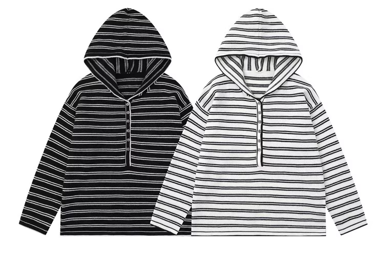 Từ sao Hỏa, cảm giác bối rối và lễ hội, thiết kế sọc kiểu Nhật, áo len dệt kim có mũ trùm đầu dáng rộng, thoải mái BF.