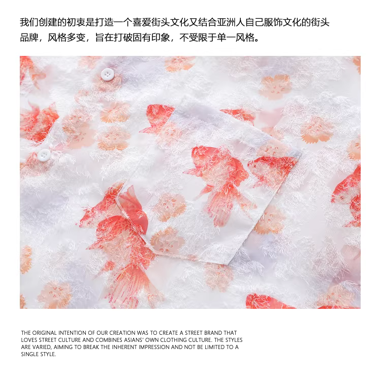 Từ sao Hỏa Chờ đợi hoàng hôn vào buổi tối Áo sơ mi ngắn tay in hình cá vàng phong cách retro giản dị dành cho mùa hè