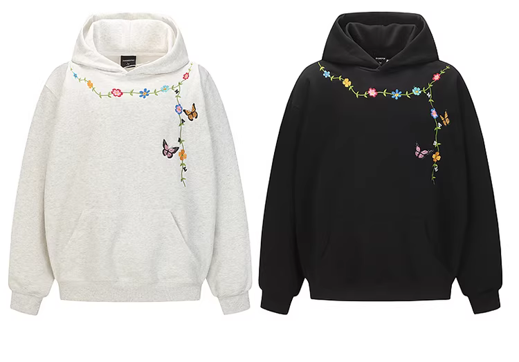 - Từ sao Hỏa, được thiết kế theo sở thích của bạn, xu hướng áo nỉ có mũ trùm đầu unisex dáng rộng thêu hoa bướm kiểu Mỹ mới.