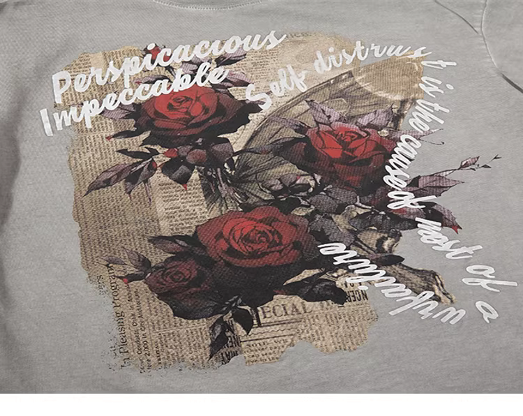 Từ sao Hỏa Hương thơm của hoa Áo thun ngắn tay cổ tròn in họa tiết hoa hồng cổ điển kiểu Mỹ mùa hè