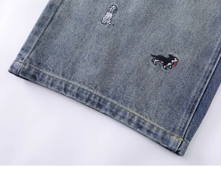 - Từ sao Hỏa không sợ làm việc chăm chỉ, thương hiệu thời thượng thêu hình chú chó mùa hè, quần short denim dáng rộng, phong cách giản dị, sang trọng