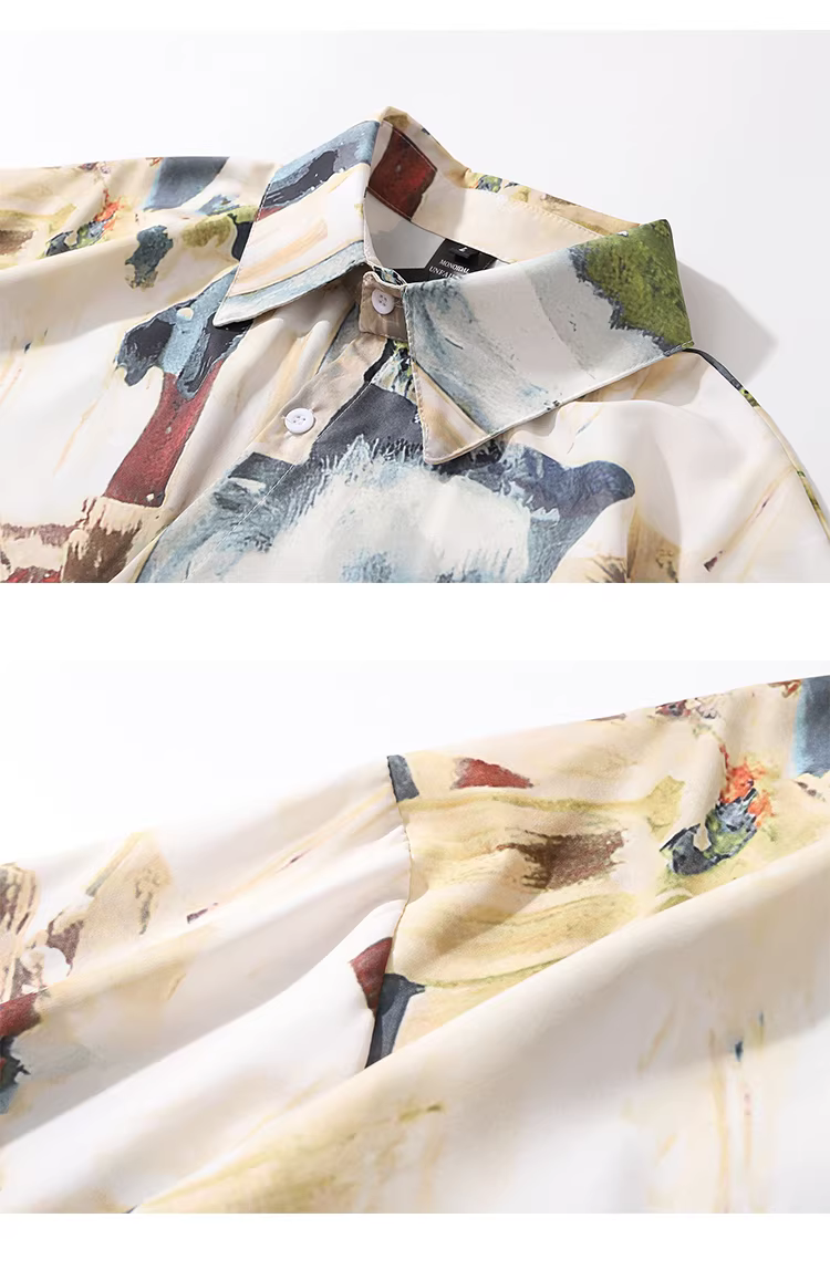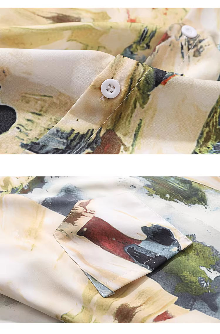 - Từ sao Hỏa nghệ thuật graffiti tranh sơn dầu cổ điển in áo sơ mi ngắn tay thương hiệu thời thượng áo cardigan dáng rộng dành cho cặp đôi