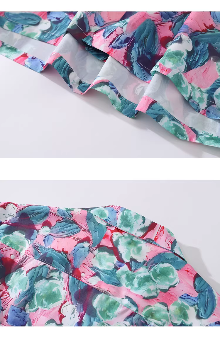 - Từ sao Hỏa, những bông hoa độc đáo, áo sơ mi ngắn tay in họa tiết hoa bằng tranh sơn dầu sáng tạo, kiểu dáng rộng rãi, giản dị, hợp thời trang trên bãi biển.