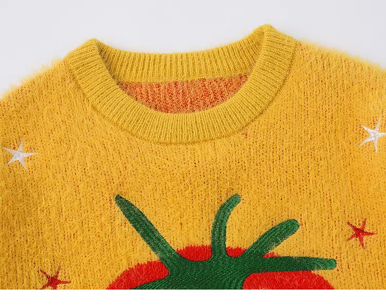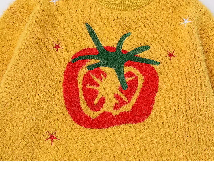 - Từ sao Hỏa Những điều tốt đẹp xảy ra Phong cách đại học cổ điển kiểu lười biếng khăn len jacquard hình quả cà chua áo len unisex