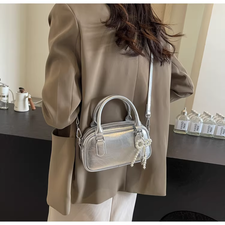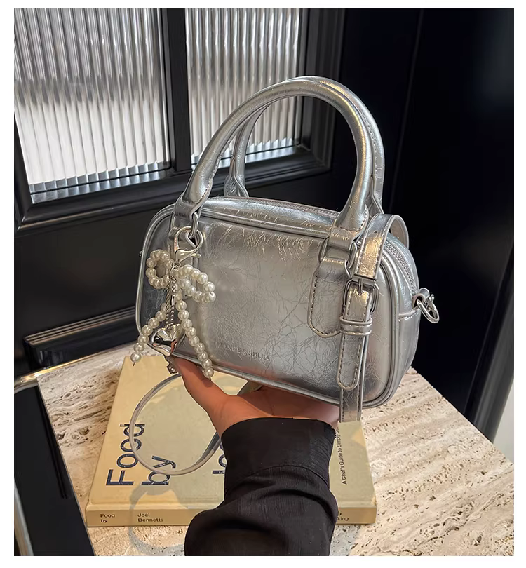 - Túi bạc nữ, đa năng cho mùa thu đông, thiết kế thời trang mới 2025, túi đeo chéo độc đáo, túi xách vuông nhỏ nữ.