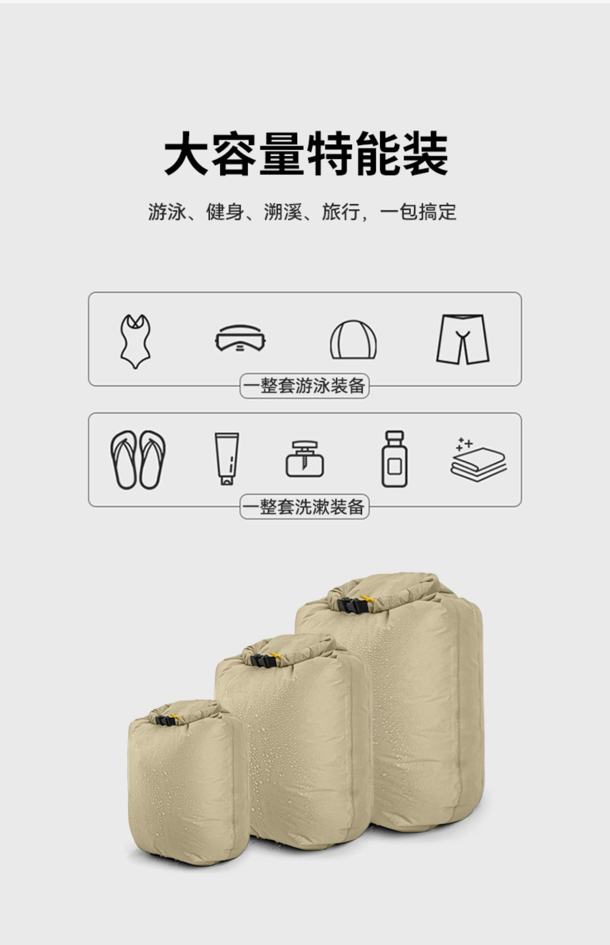 Túi chống nước siêu nhẹ phủ silicon ngoài trời dùng cho chèo thuyền sông, bơi lội, bãi biển, đồ bơi, khăn tắm, ngăn chứa đồ khô và ướt riêng biệt