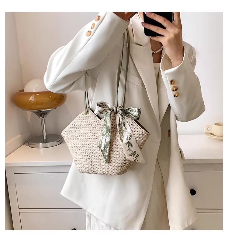 Túi cói đan tay dành cho nữ, kiểu mới hè 2025, chất liệu cao cấp, đi biển, túi đeo vai độc đáo, túi đeo nách.