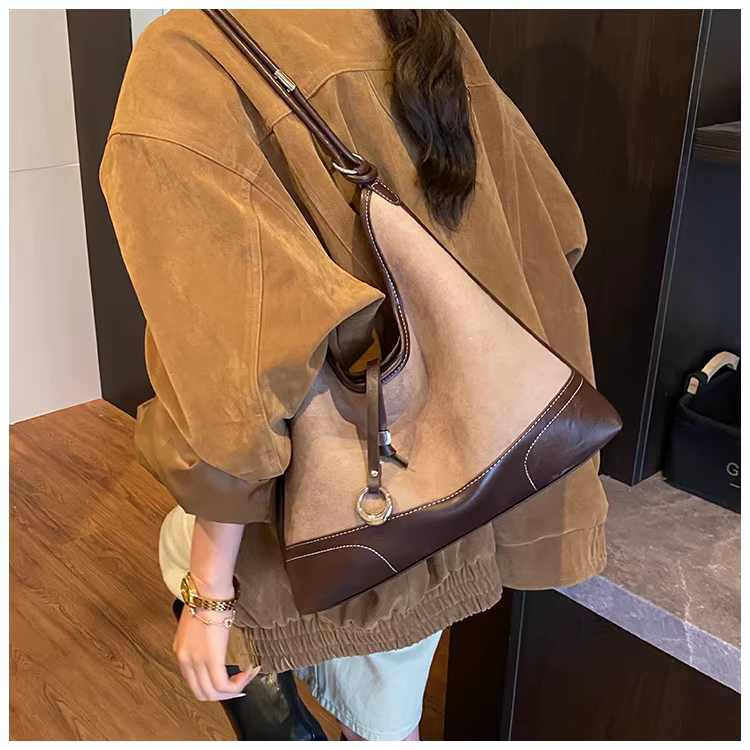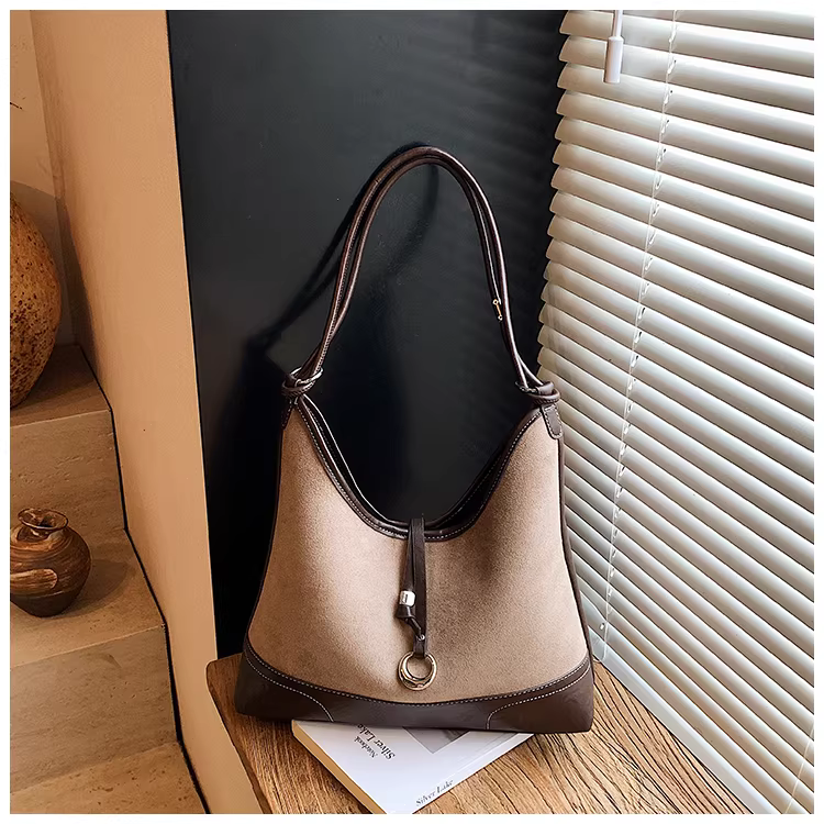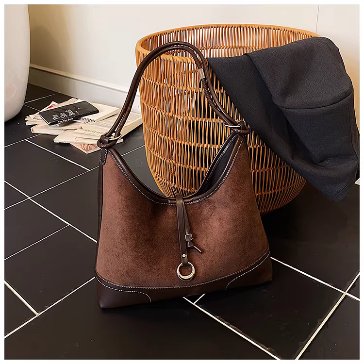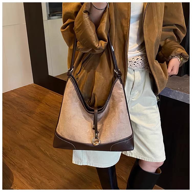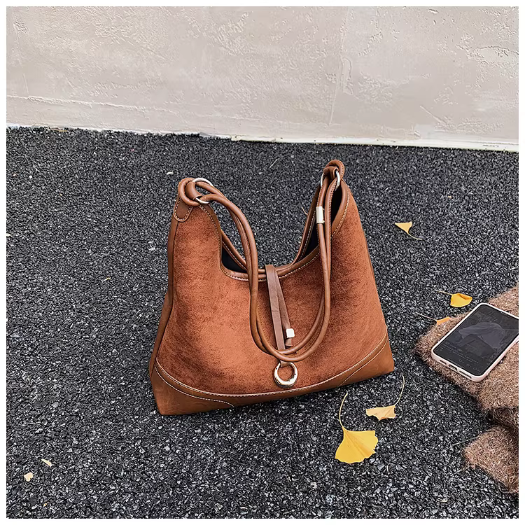 - Túi da lộn dành cho nữ, sức chứa lớn, mẫu mới thu đông 2025, kiểu retro mờ, đeo vai/nách, túi đi làm kiểu bánh bao.