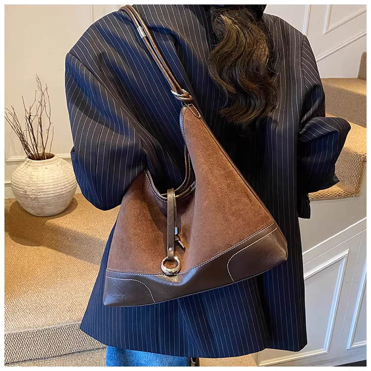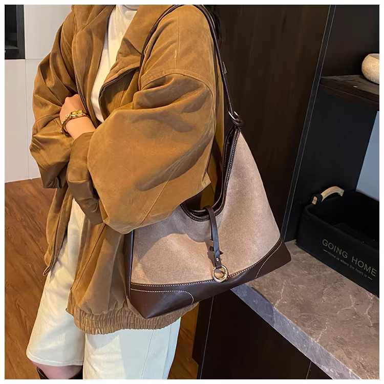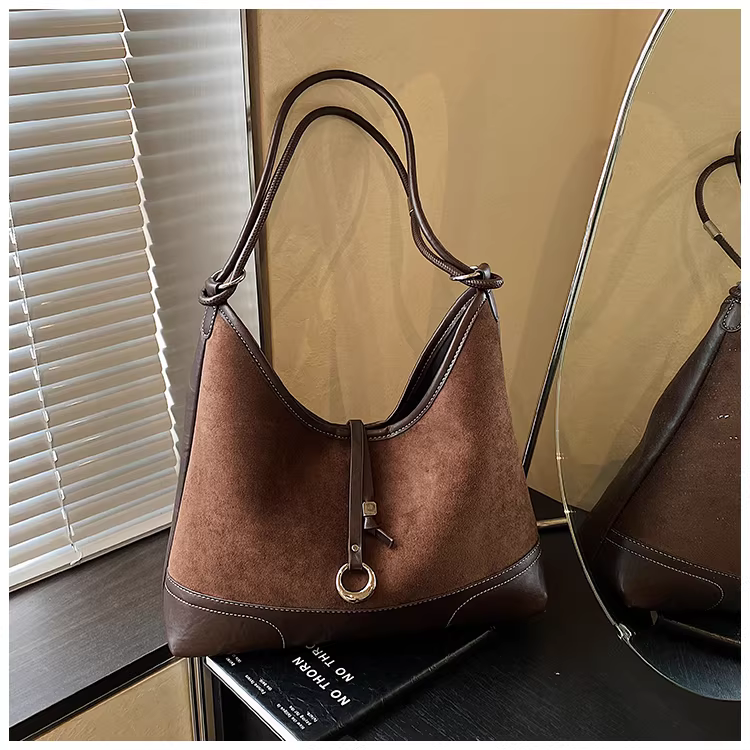 Túi da lộn dành cho nữ, sức chứa lớn, mẫu mới thu đông 2025, kiểu retro mờ, đeo vai/nách, túi đi làm kiểu bánh bao.