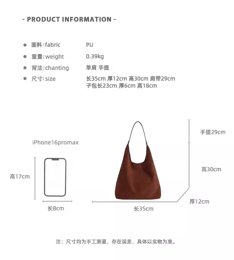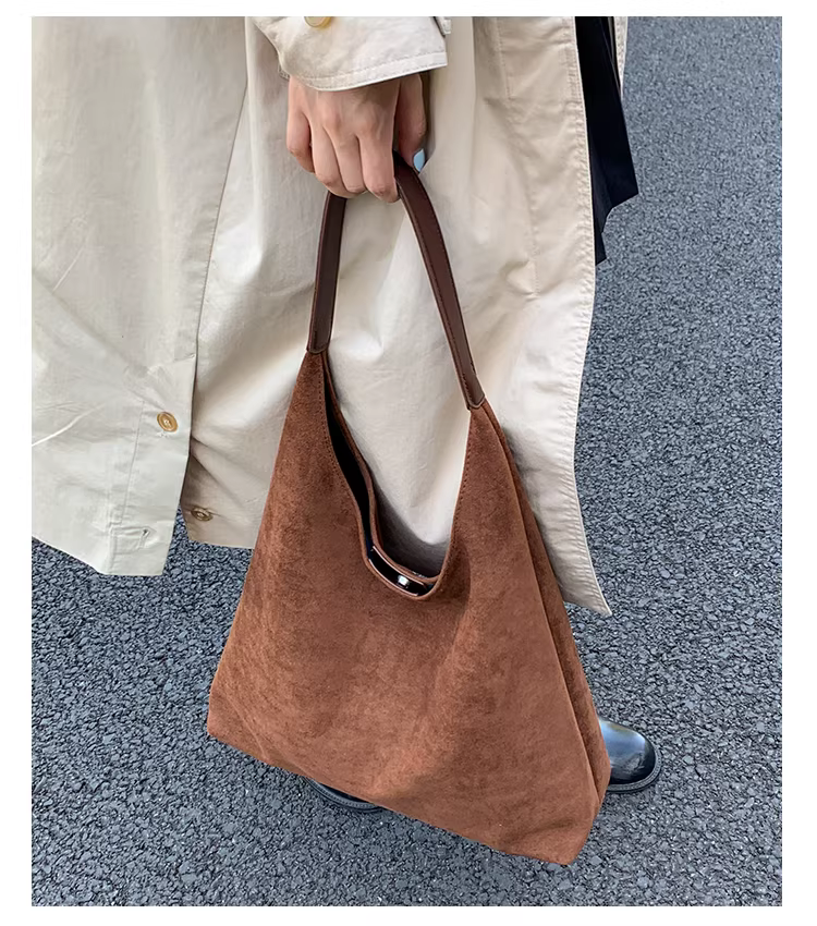 - Túi da lộn nữ, dung tích lớn, mẫu mới thu đông 2025, đa năng, chất liệu lì, kiểu retro, đeo vai, thích hợp đi làm