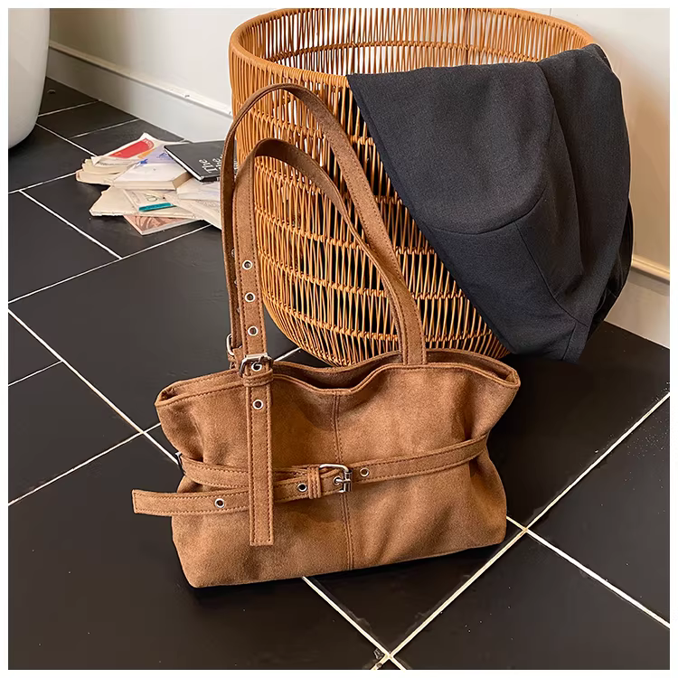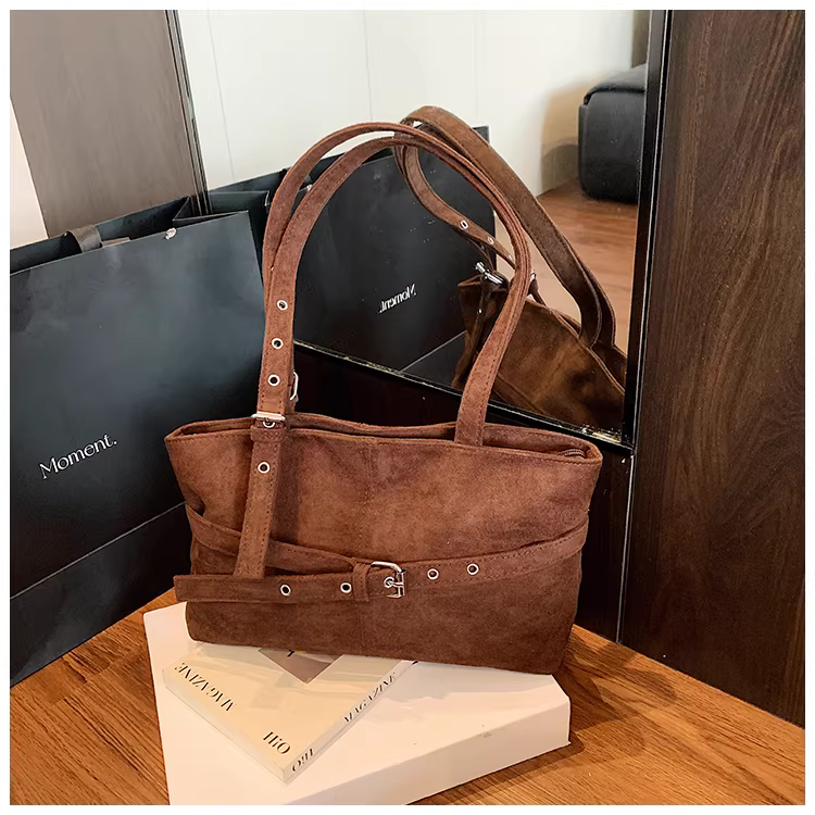 - Túi da lộn nữ, dung tích lớn, mẫu mới thu đông 2025, đa năng, phong cách giản dị, đeo vai, kiểu retro, túi tote đi làm