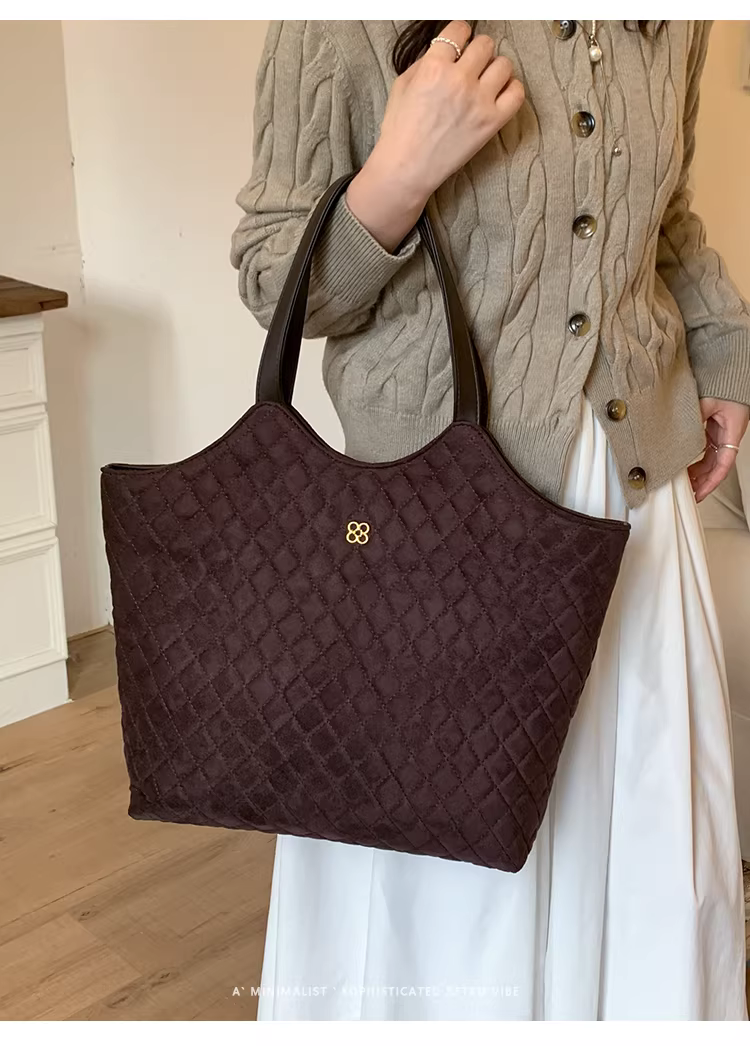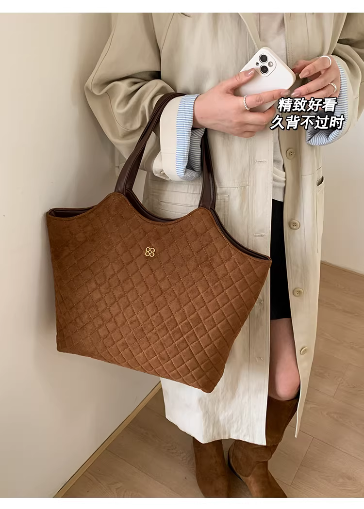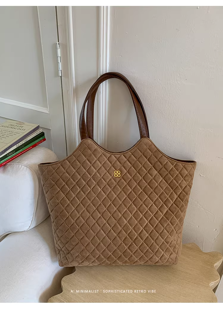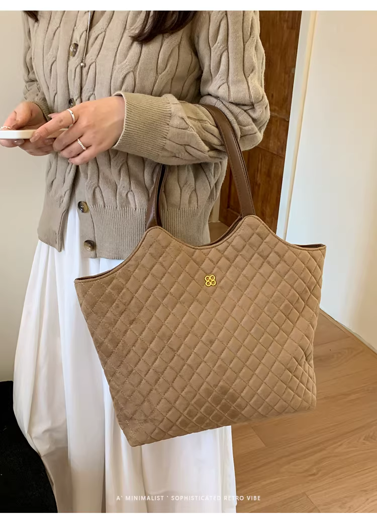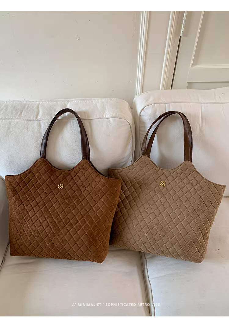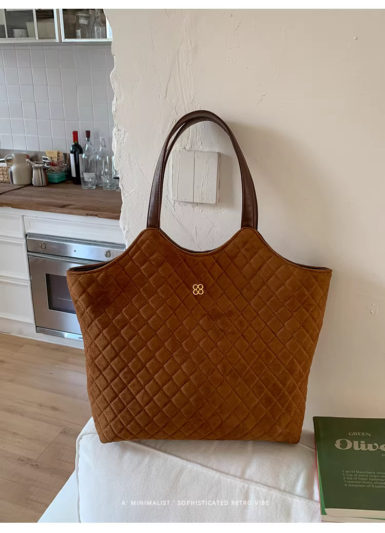 Túi da lộn nữ, dung tích lớn, mẫu mới thu đông 2025, kiểu dáng retro, đeo chéo, túi may chần, túi tote đi làm