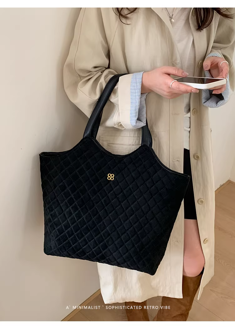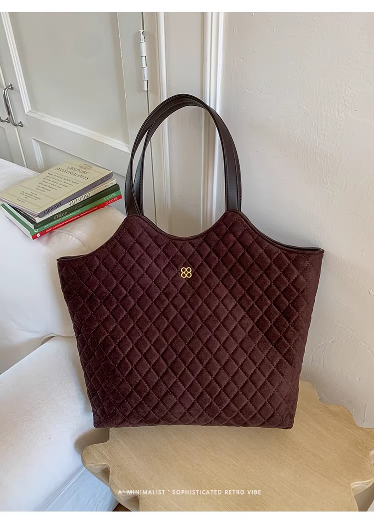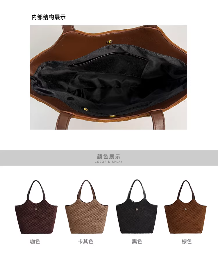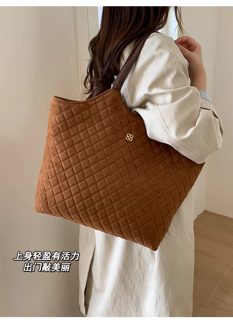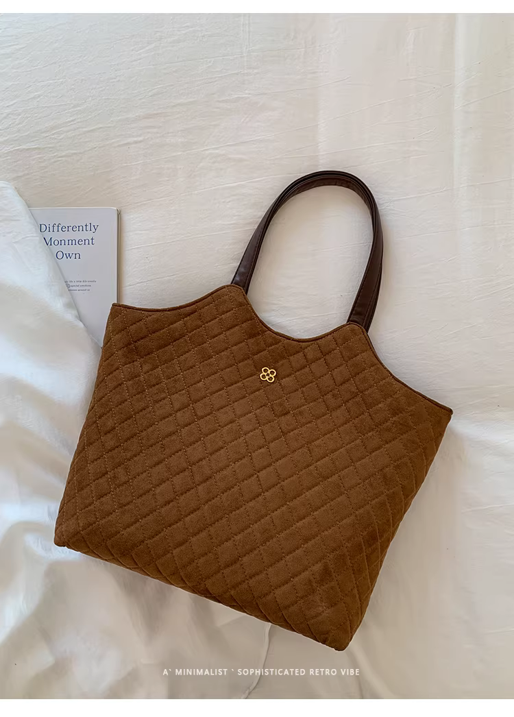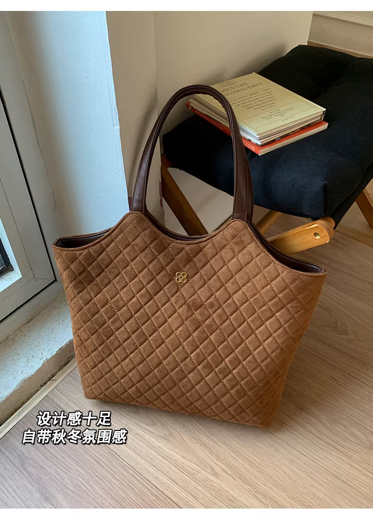 Túi da lộn nữ, dung tích lớn, mẫu mới thu đông 2025, kiểu dáng retro, đeo chéo, túi may chần, túi tote đi làm