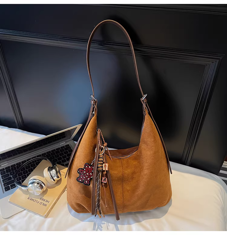 Túi da lộn nữ, dung tích lớn, mẫu mới thu đông 2025, túi đeo chéo retro mờ, túi bánh bao đi làm thường ngày