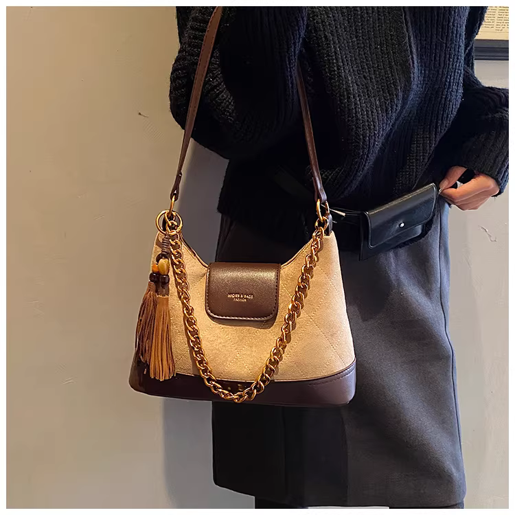 - Túi da lộn nữ, dung tích lớn, mẫu mới thu đông 2025, túi đeo chéo/vách vai phong cách giản dị, túi bánh bao retro