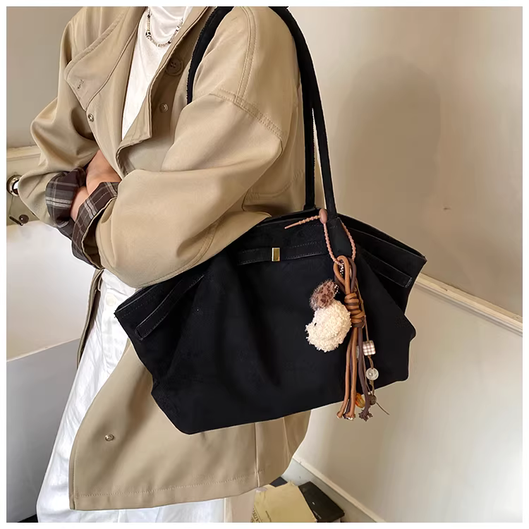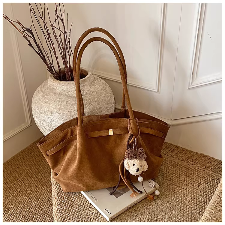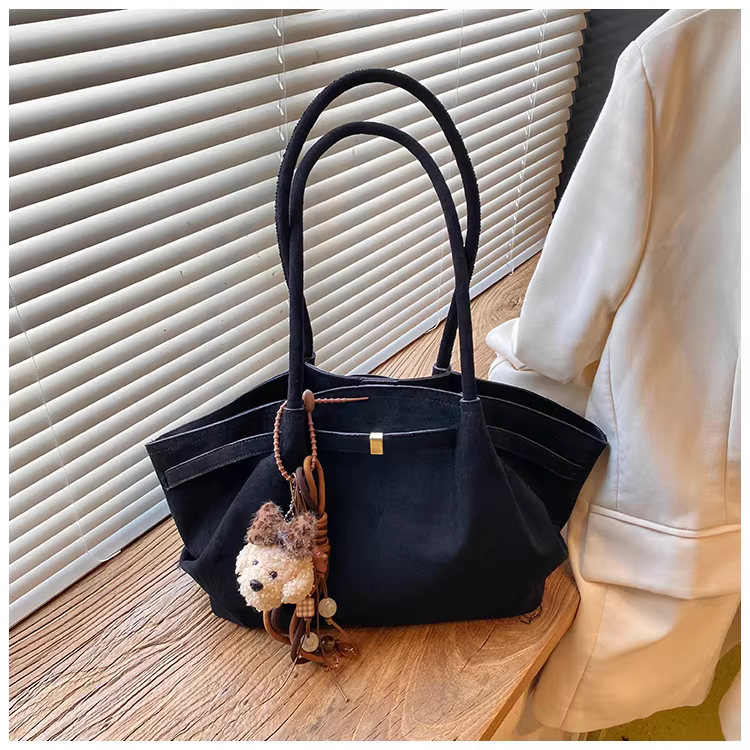 - Túi da lộn nữ, dung tích lớn, mẫu mới thu đông 2025, túi đeo vai cổ điển mờ, túi tote đi làm xếp ly