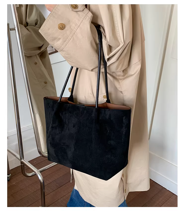 - Túi da lộn nữ, dung tích lớn, mẫu mới thu đông 2025, túi đeo vai đa năng, túi tote đi làm phong cách retro