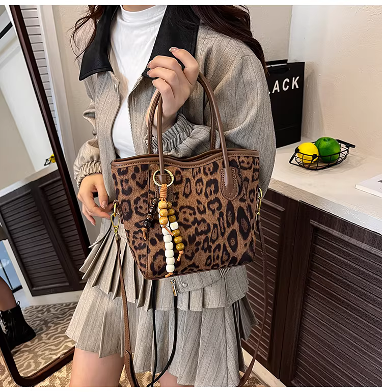 - Túi da lộn nữ, mẫu mới thu đông 2025, thiết kế cá tính độc đáo, họa tiết da báo, túi đeo chéo, túi bucket retro thời thượng