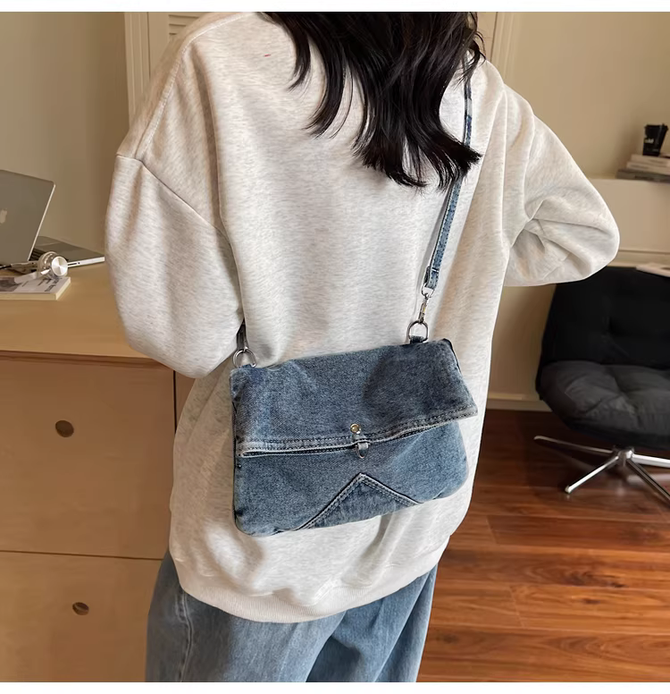 - Túi denim nữ, dung tích lớn, mẫu mới hè 2025, túi đeo chéo đa năng, túi tote đơn giản, phong cách thường ngày, thích hợp đi làm