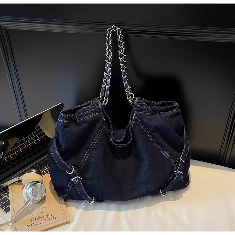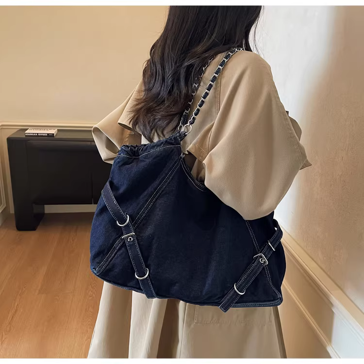 Túi denim nữ, dung tích lớn, mẫu mới thu đông 2025, đa năng, phong cách thường ngày, đeo chéo, túi tote học sinh