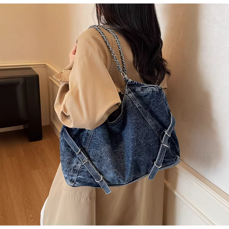 - Túi denim nữ, dung tích lớn, mẫu mới thu đông 2025, đa năng, phong cách thường ngày, đeo chéo, túi tote học sinh