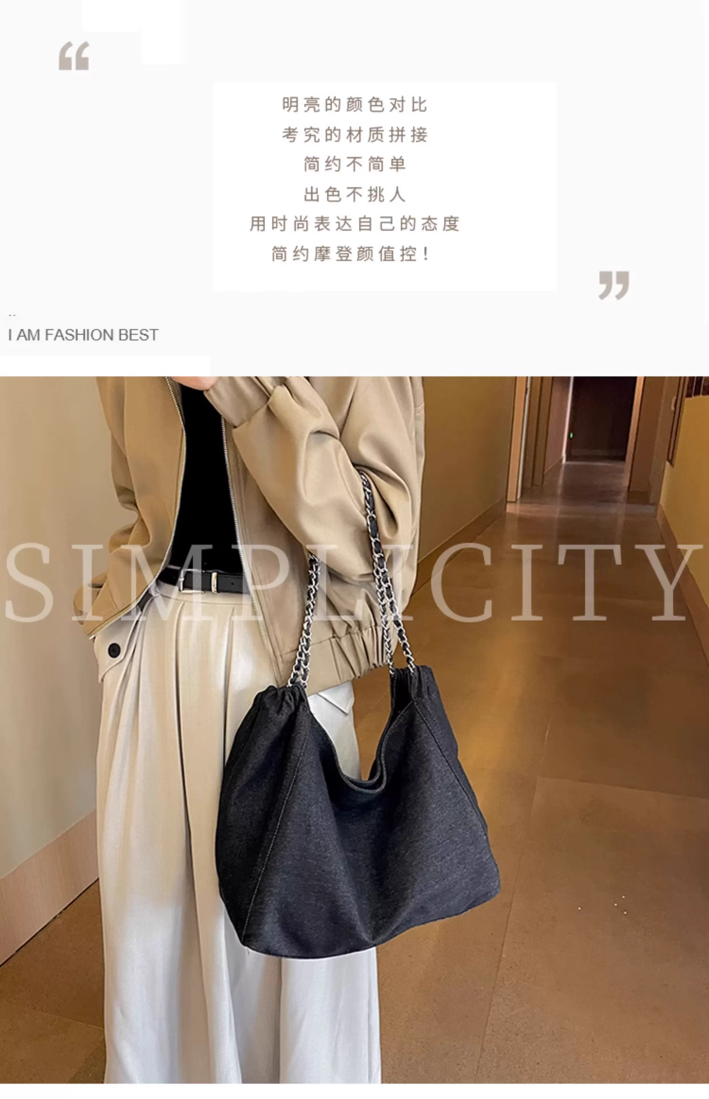 - Túi denim nữ, dung tích lớn, mẫu mới thu đông 2025, túi đeo chéo đa năng, túi vải cao cấp, túi tote.