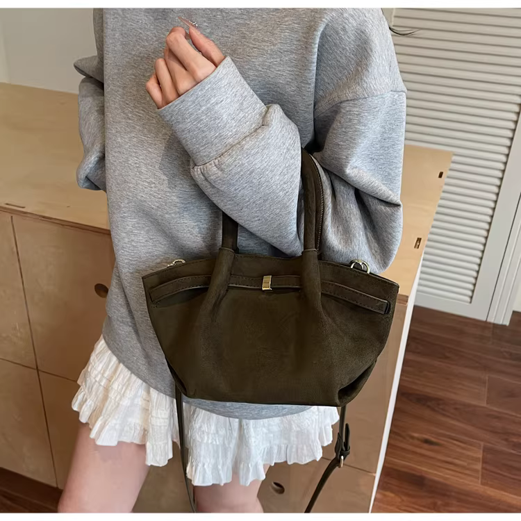 - Túi đeo chéo nữ phong cách retro, chất liệu mờ, dung tích lớn, thiết kế độc đáo mùa thu đông 2025, túi tote xếp ly đi làm