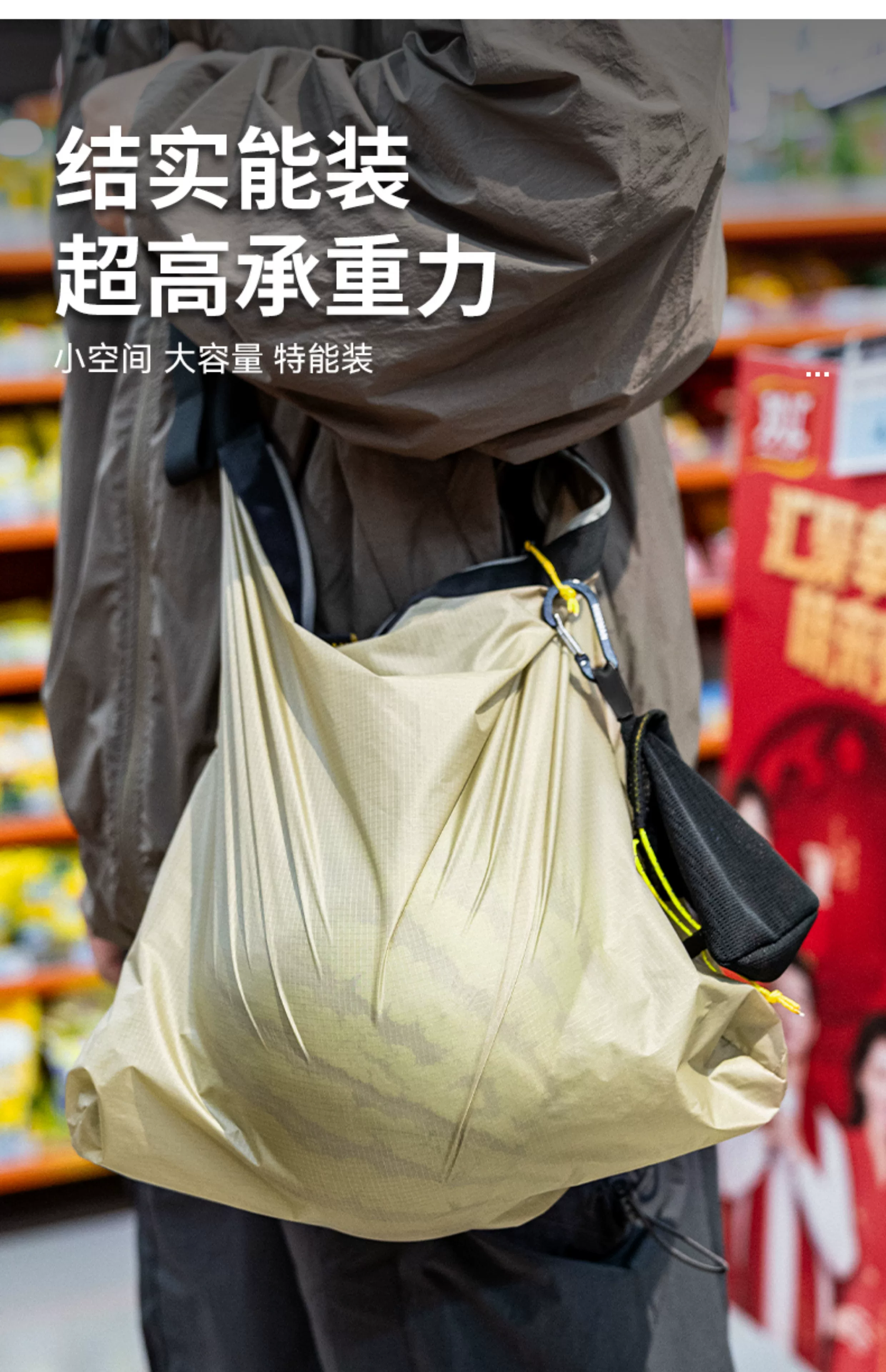 Túi đeo vai ngoài trời siêu nhẹ có thể gập lại để đi bộ đường dài và đạp xe, túi đeo chéo có lớp phủ silicon, chống thấm nước, túi mua sắm di động