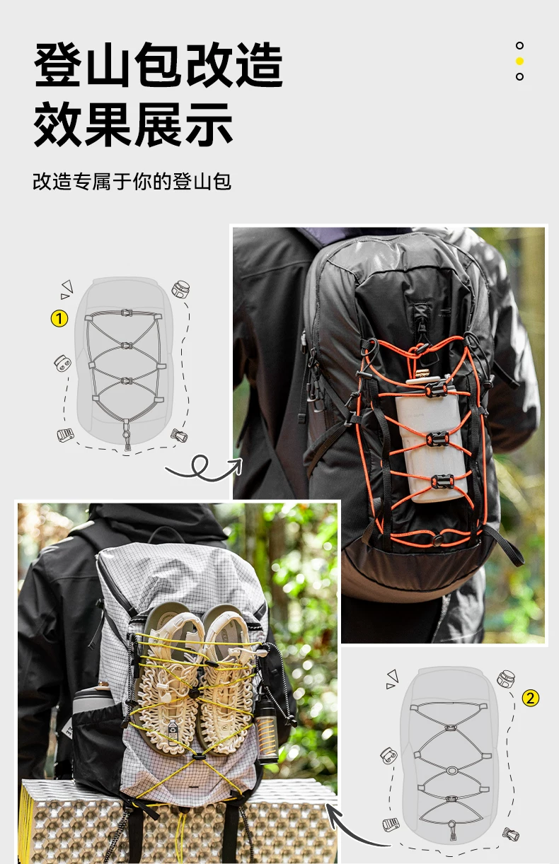 - Túi đi bộ đường dài ngoài trời DIY sửa đổi mở rộng dây đàn hồi phản quang nhỏ hình đại bàng mặt trời ba lô mở rộng bên ngoài dây buộc