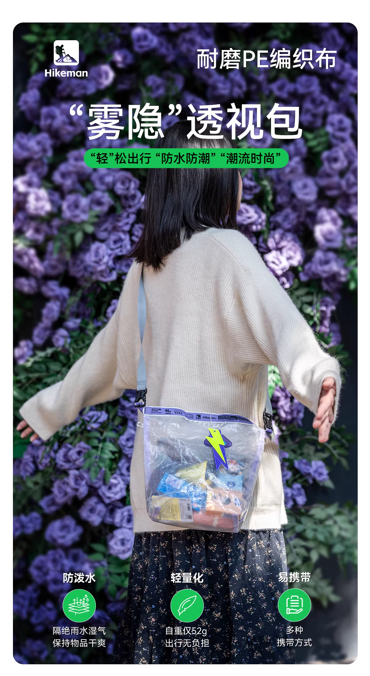 Túi du lịch ngoài trời trong suốt, xách tay, dùng cho đi làm, thể thao, đựng đồ, chất liệu vải dệt, chống thấm nước, dung tích lớn, đeo chéo