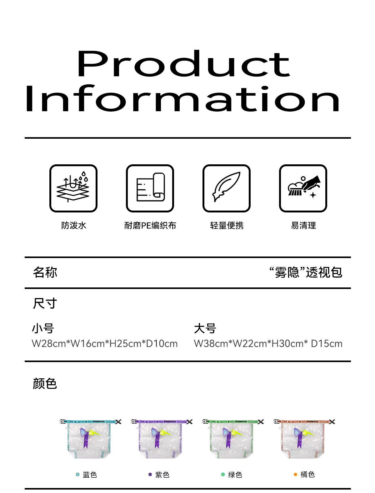 - Túi du lịch ngoài trời trong suốt, xách tay, dùng cho đi làm, thể thao, đựng đồ, chất liệu vải dệt, chống thấm nước, dung tích lớn, đeo chéo