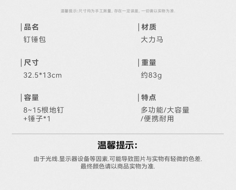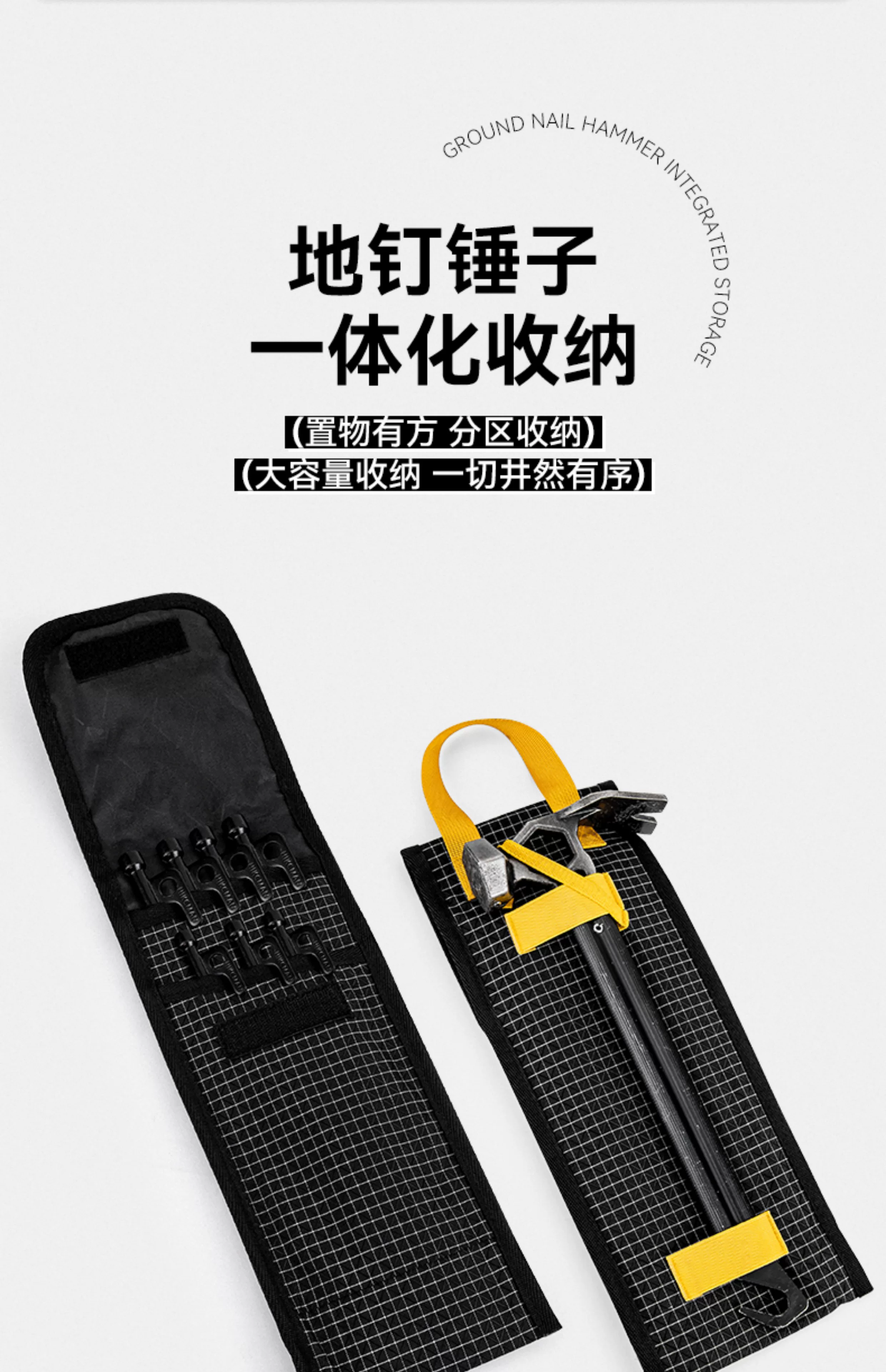 - Túi đựng cọc cắm trại ngoài trời, cọc lều di động bền bỉ, cọc bạt, bộ dụng cụ búa