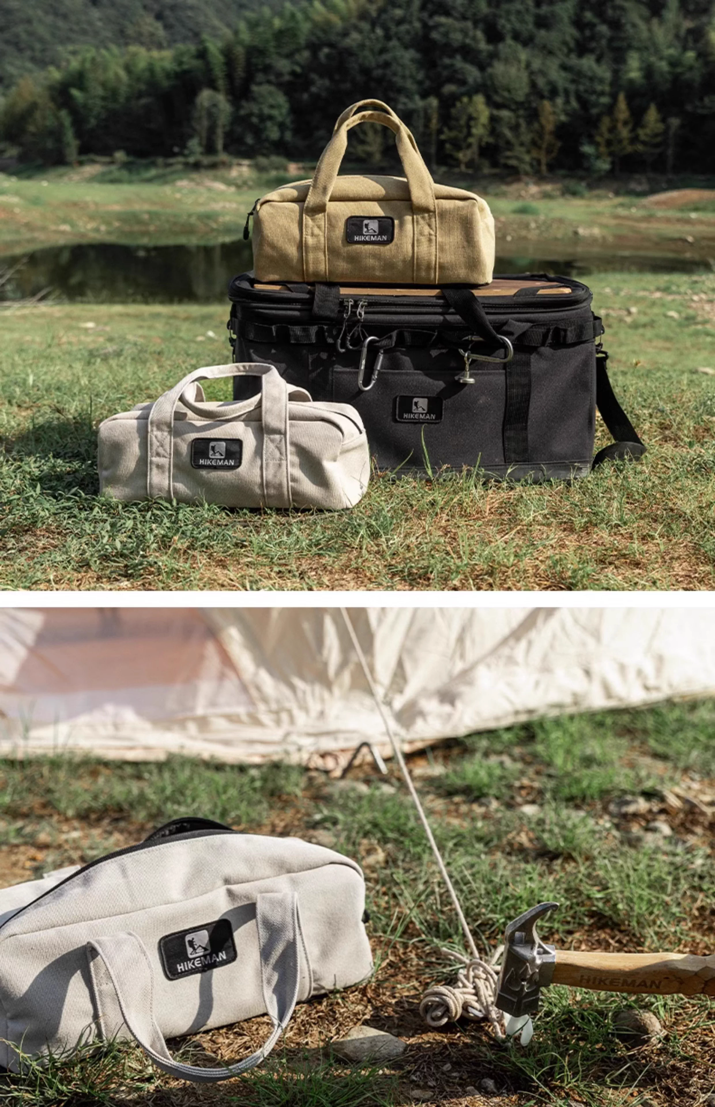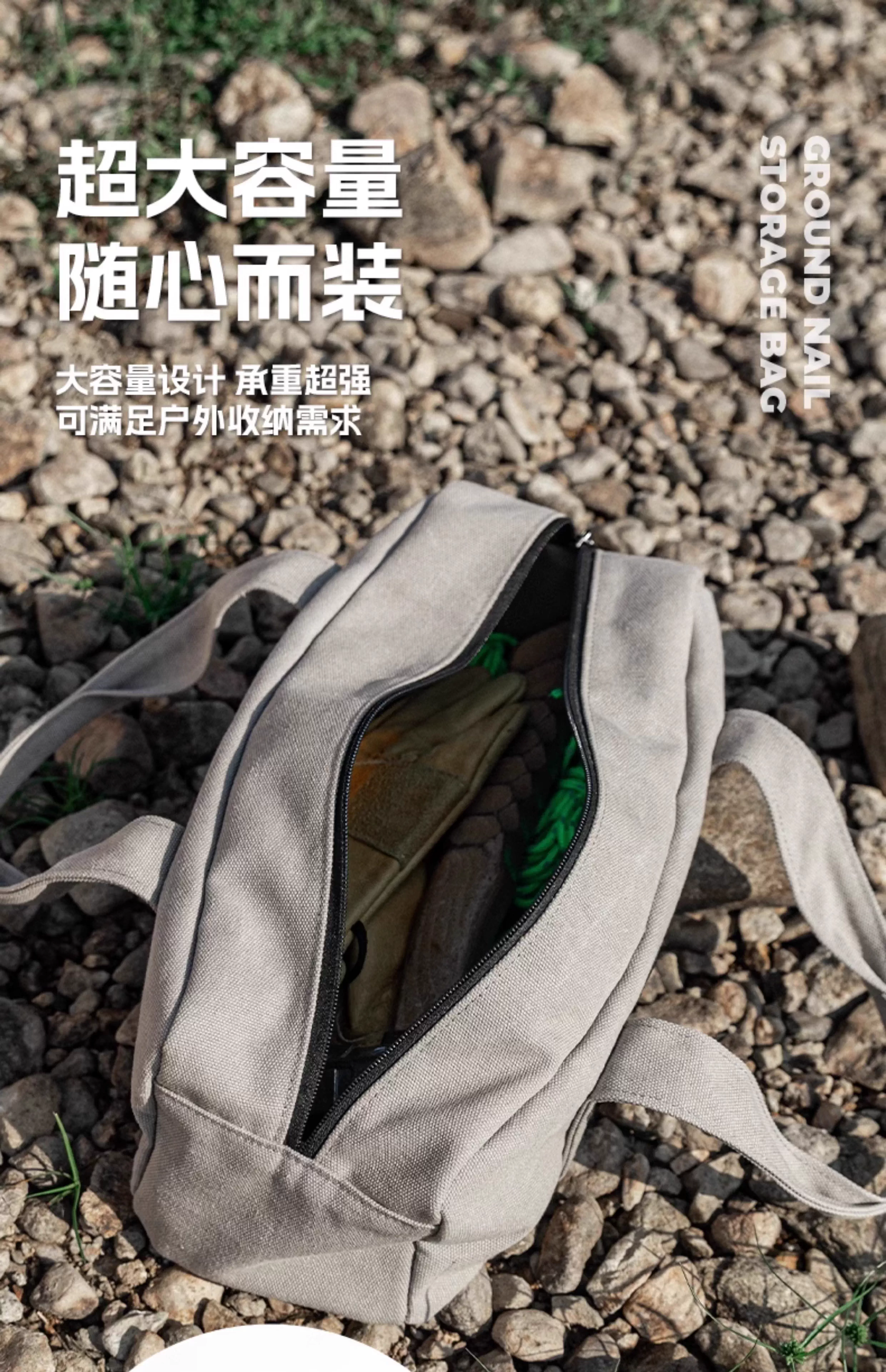 - Túi đựng cọc lều cắm trại ngoài trời, thiết lập mái che lều, dây gió, bộ búa, dụng cụ cầm tay, các vật dụng linh tinh, túi đựng đồ bằng vải