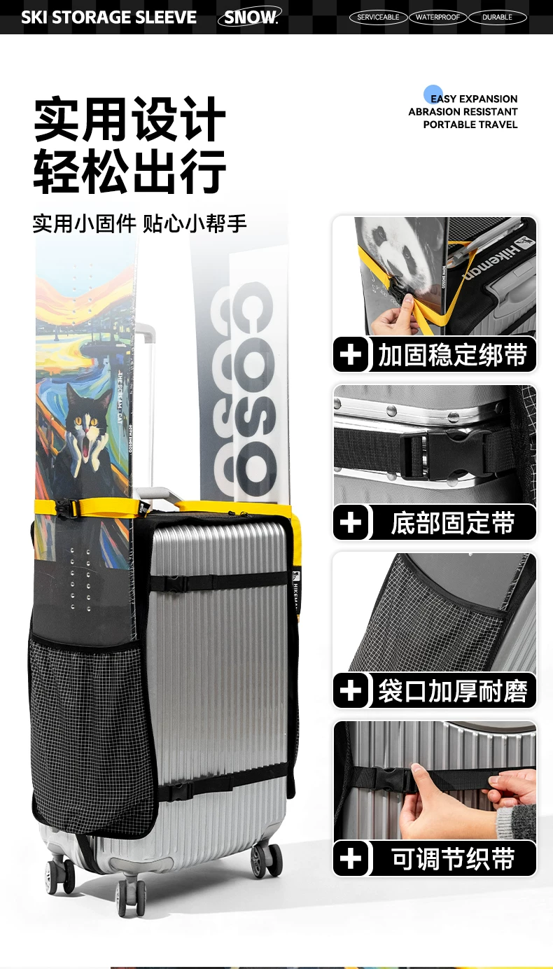 - Túi đựng đồ trượt tuyết ngoài trời, sửa đổi vali kéo, vỏ bảo vệ cố định ván đôi bên ngoài, túi đựng đồ trượt tuyết