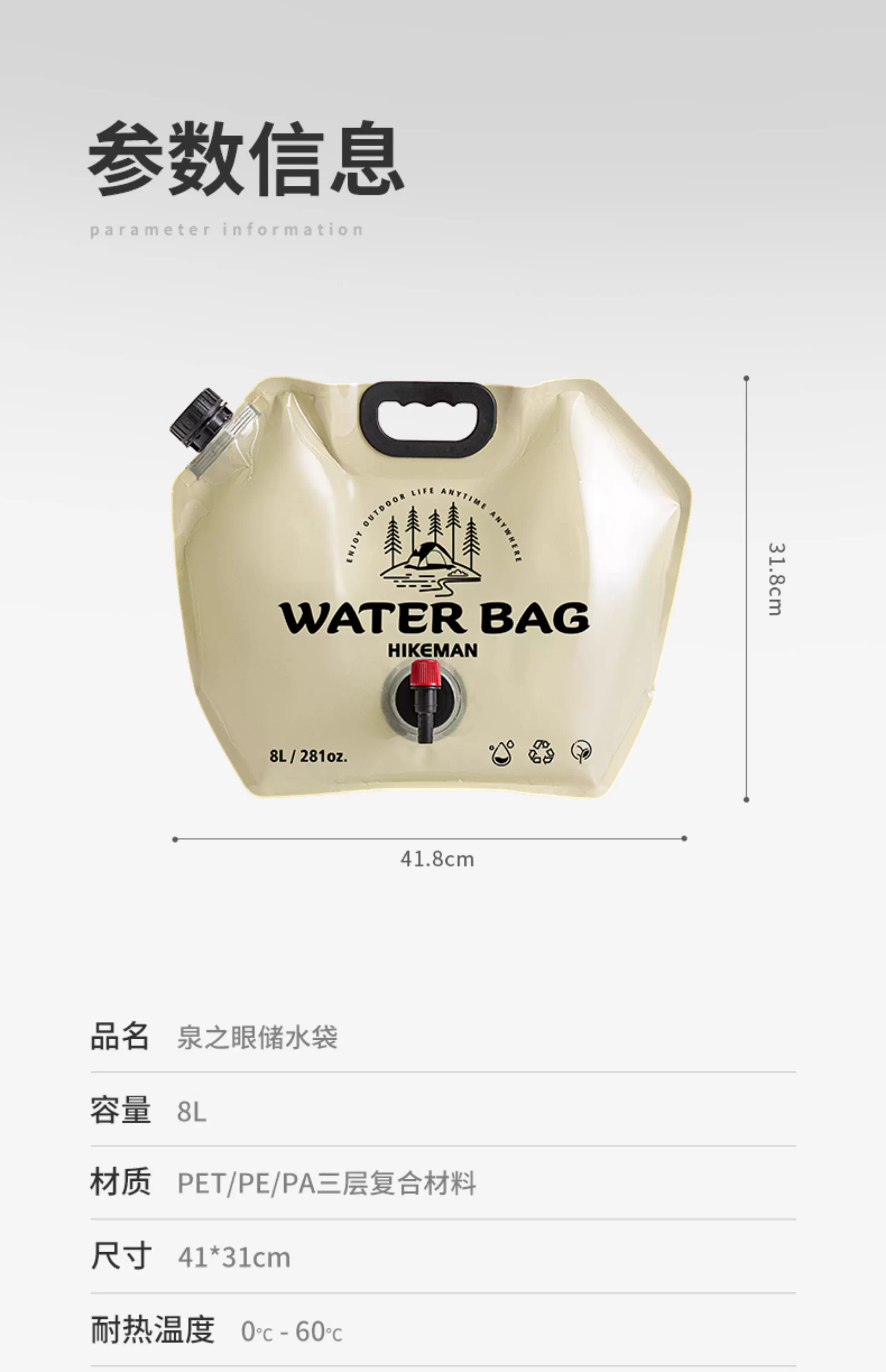 - Túi đựng nước dung tích lớn ngoài trời 8L túi đựng nước có thể gập lại di động cắm trại gắn trên xe ô tô xô nước mềm túi đựng nước cấp thực phẩm