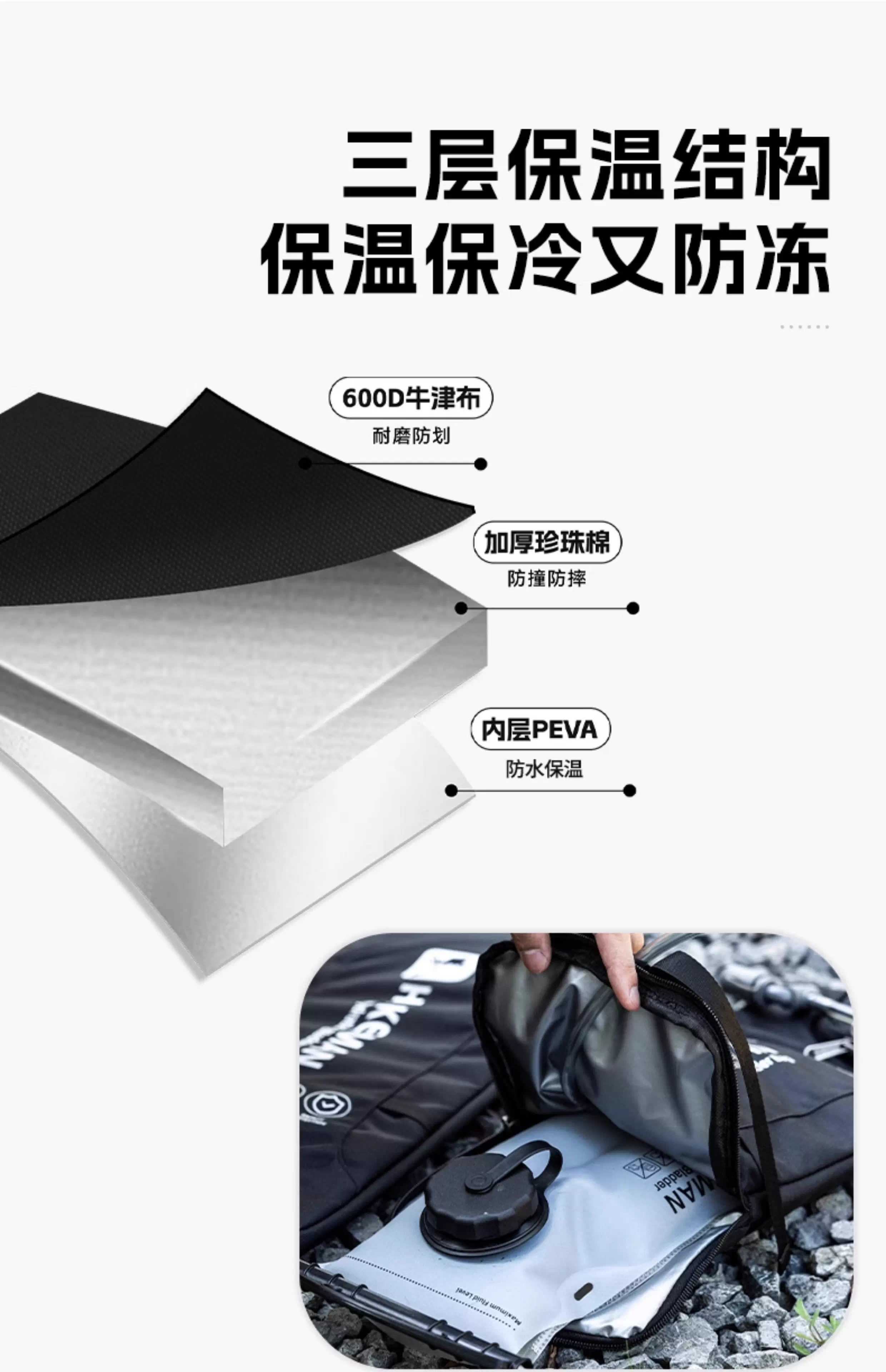 Túi đựng nước uống ngoài trời, túi cách nhiệt, vỏ bảo vệ chống bỏng và giữ lạnh di động, leo núi, đi bộ đường dài, xuyên quốc gia, dày dặn, chống đông, túi bảo vệ chống mài mòn
