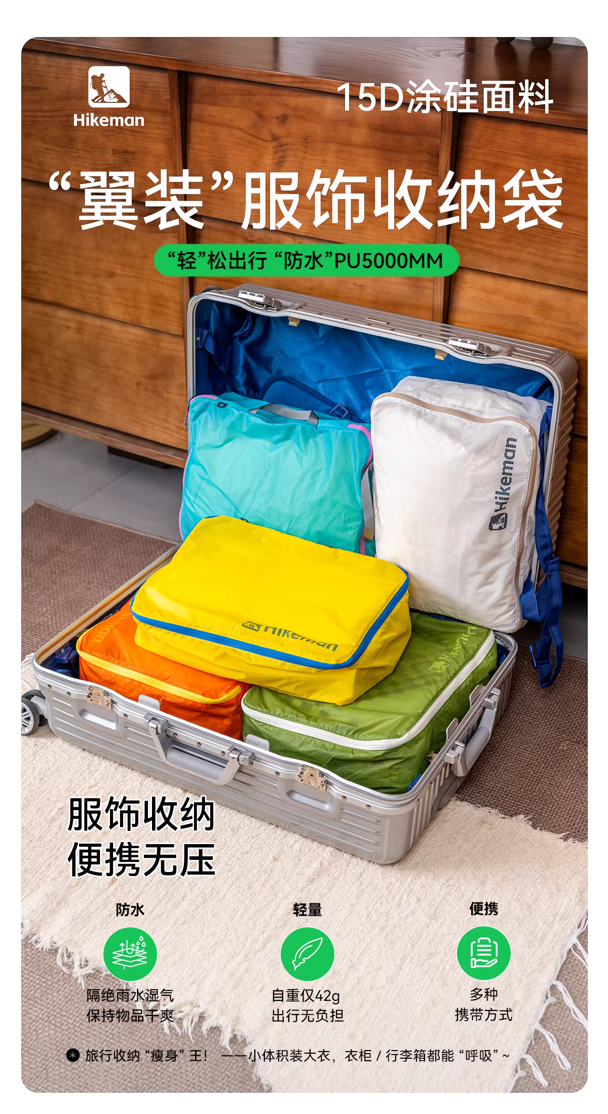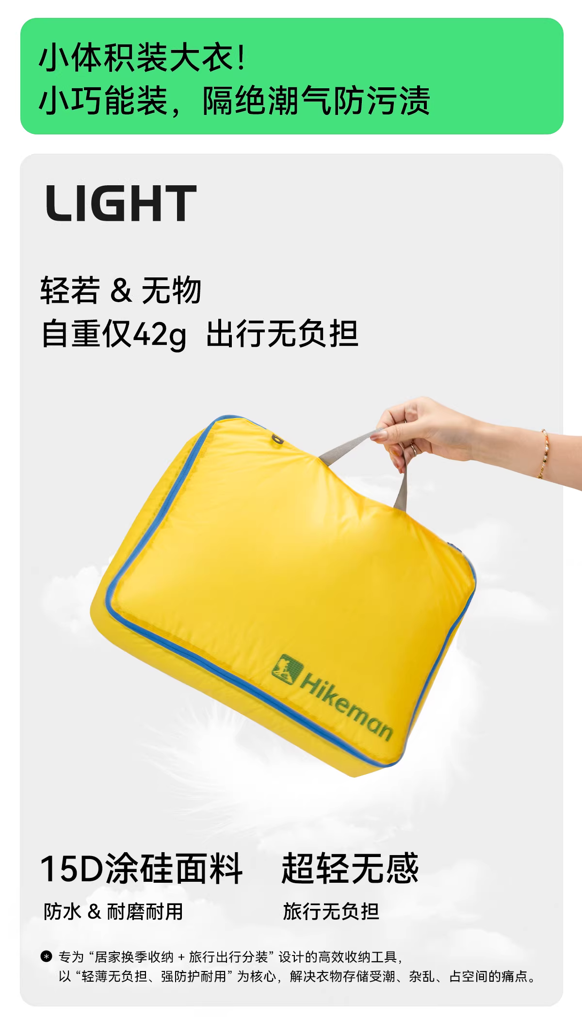 - Túi đựng quần áo du lịch, siêu nhẹ, di động, vali dung tích lớn, túi đựng và đóng gói áo khoác, phủ silicon và chống thấm nước