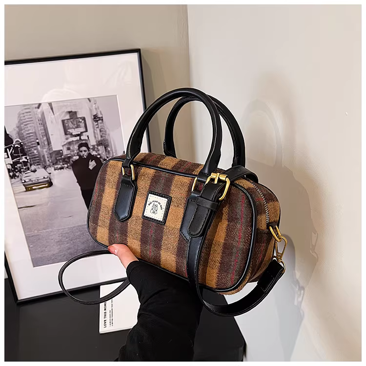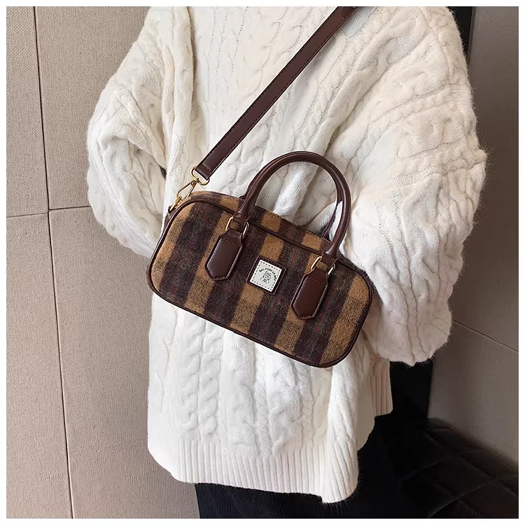 - Túi len phối màu sọc dành cho nữ, mẫu thiết kế độc đáo mùa thu đông 2025, túi đeo chéo thời thượng, túi gối phổ biến