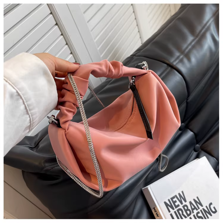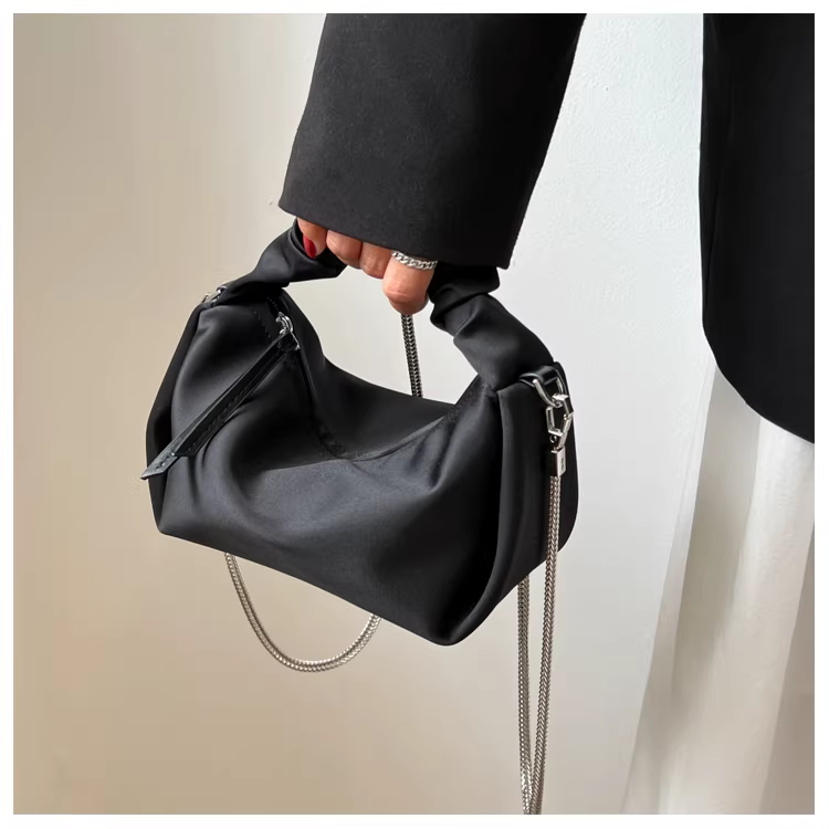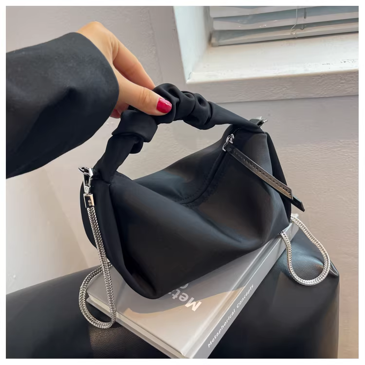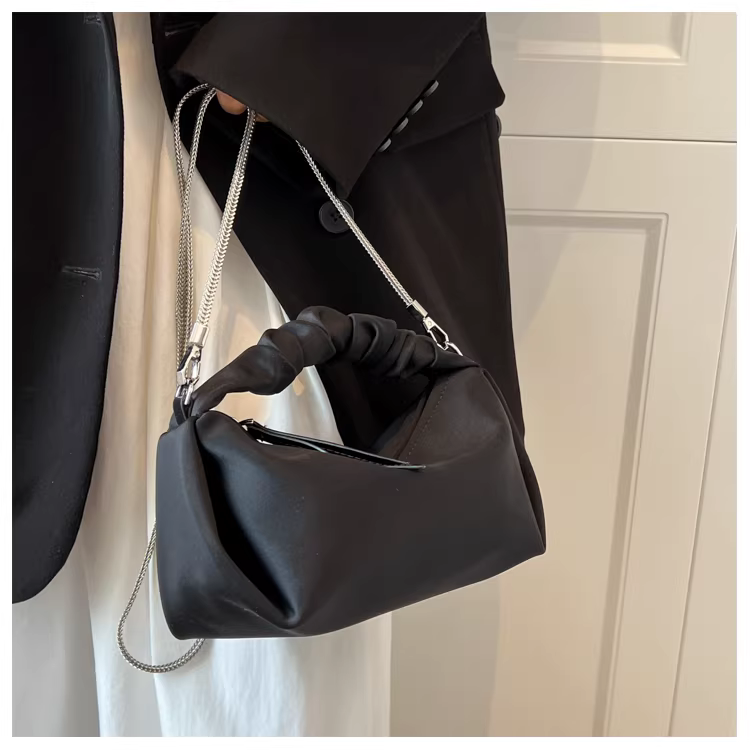 - Túi nylon nữ 2025 mẫu mới thu đông thiết kế độc đáo túi đeo chéo dây xích túi xách xếp ly thời thượng túi gối