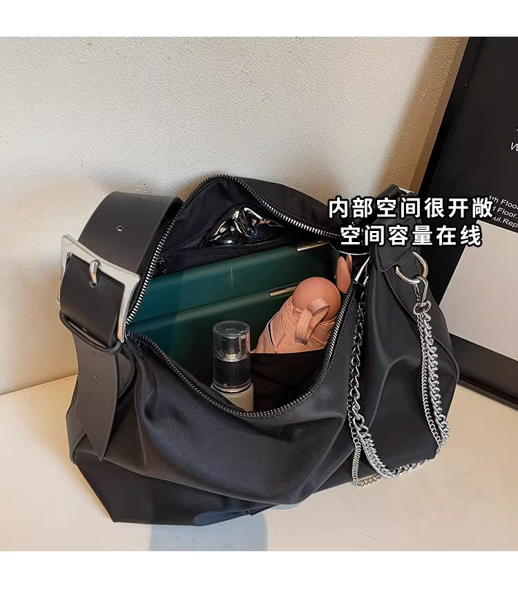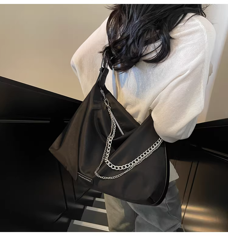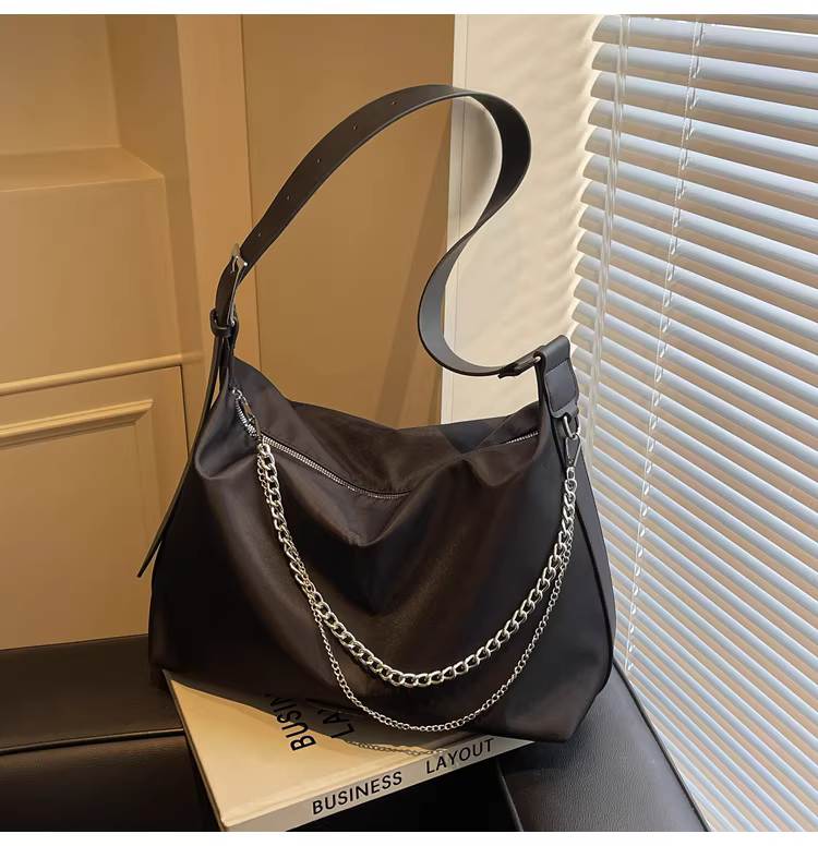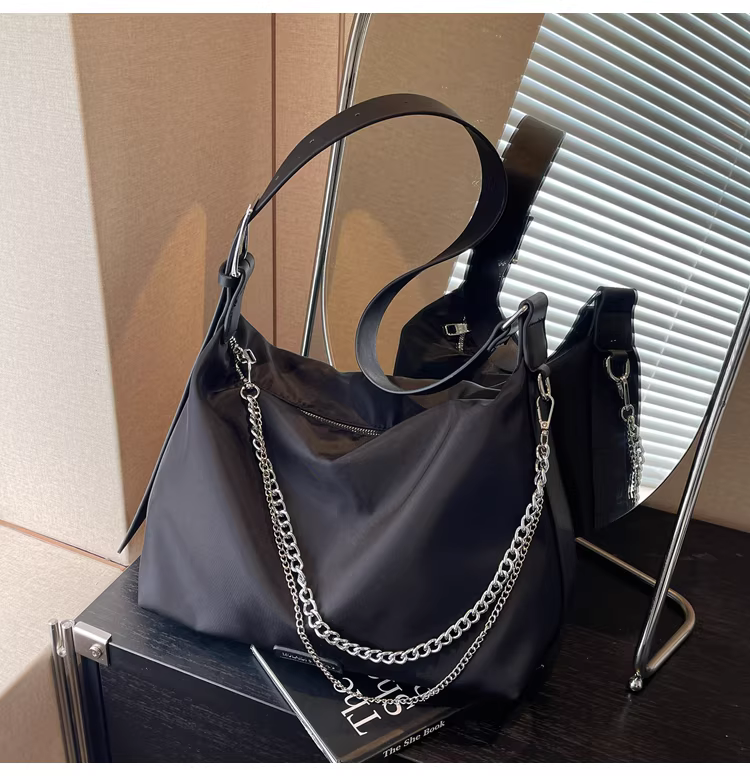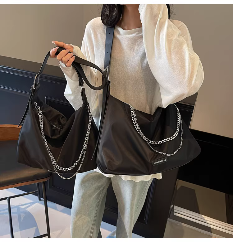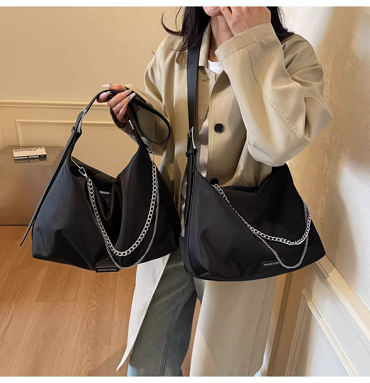 - Túi vải canvas cỡ lớn dành cho nữ, mẫu mới xuân hè 2025, đa năng, đeo vai, đeo chéo, có dây xích, túi tote đi làm