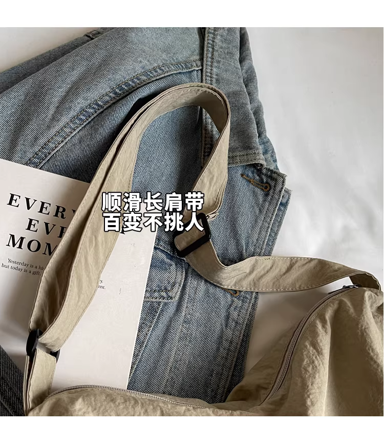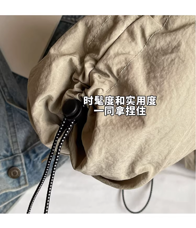 - Túi vải canvas nữ, dung tích lớn, mẫu mới thu đông 2025, túi đeo chéo xếp ly phong cách thường ngày, túi tote đi học đi làm