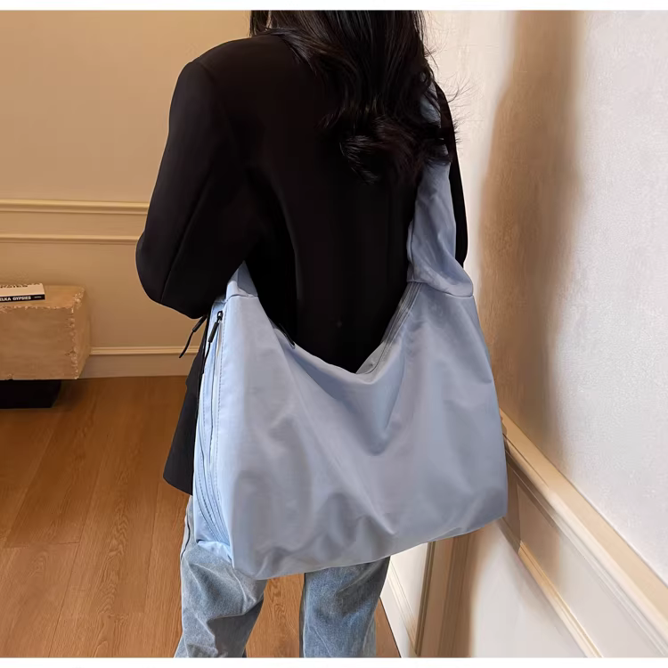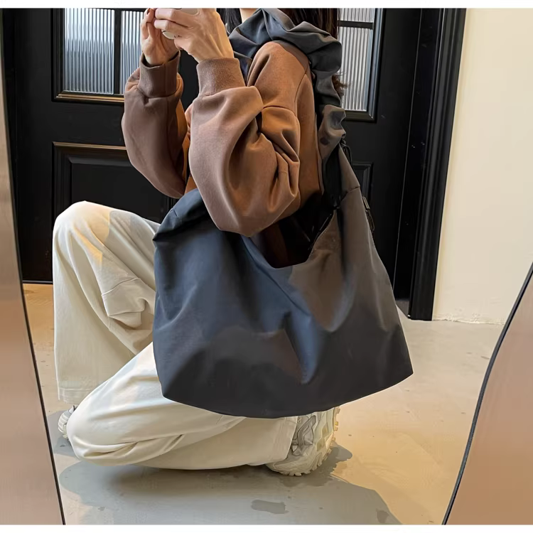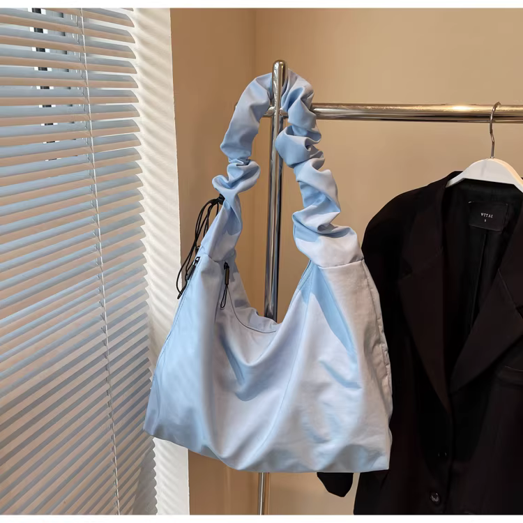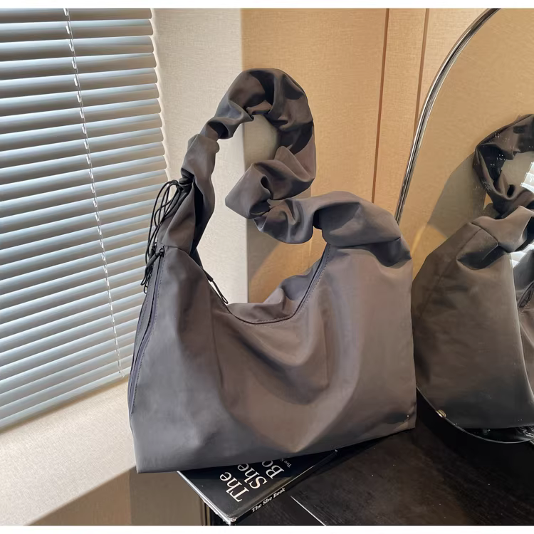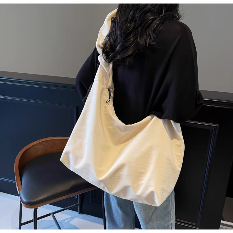 - Túi vải canvas nữ, dung tích lớn, mẫu mới xuân hè 2025, túi đeo chéo đa năng, túi tote xếp ly đi học.