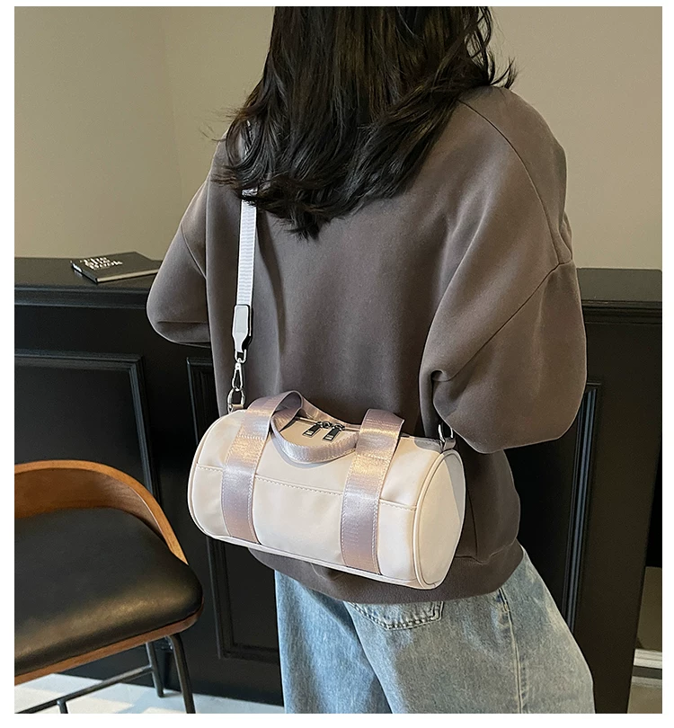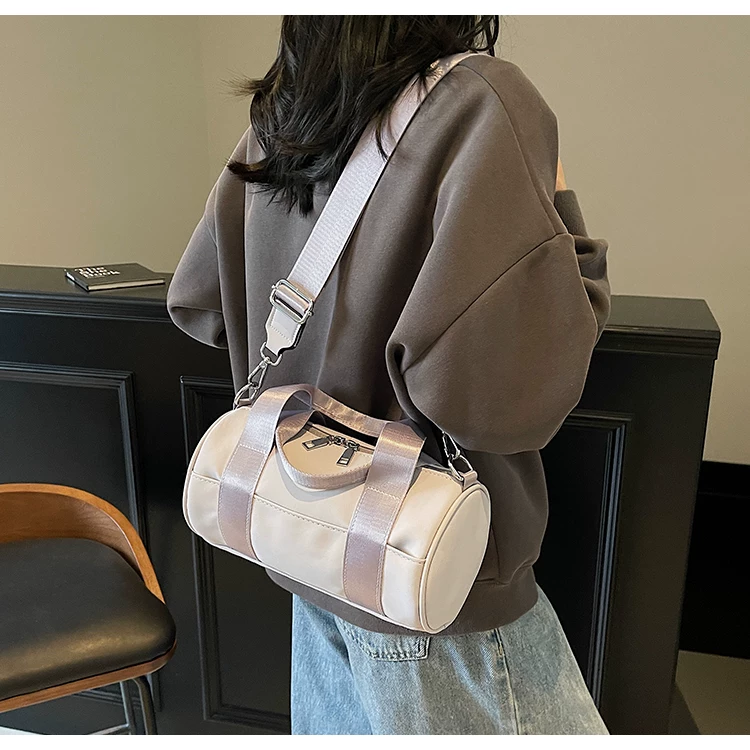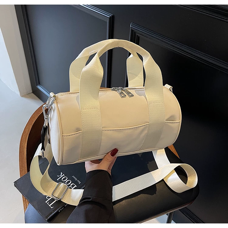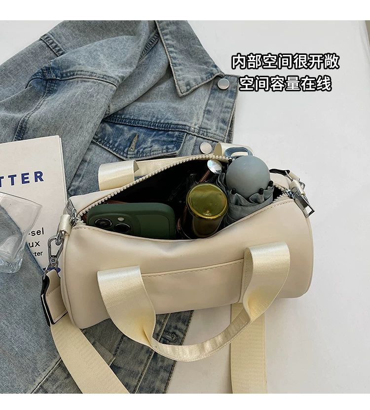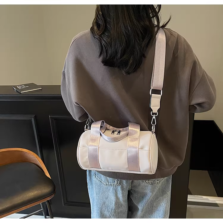 - Túi vải canvas nữ, dung tích lớn, thiết kế độc đáo mùa hè 2025, túi đeo chéo quai rộng, túi hình trụ thời trang cao cấp.