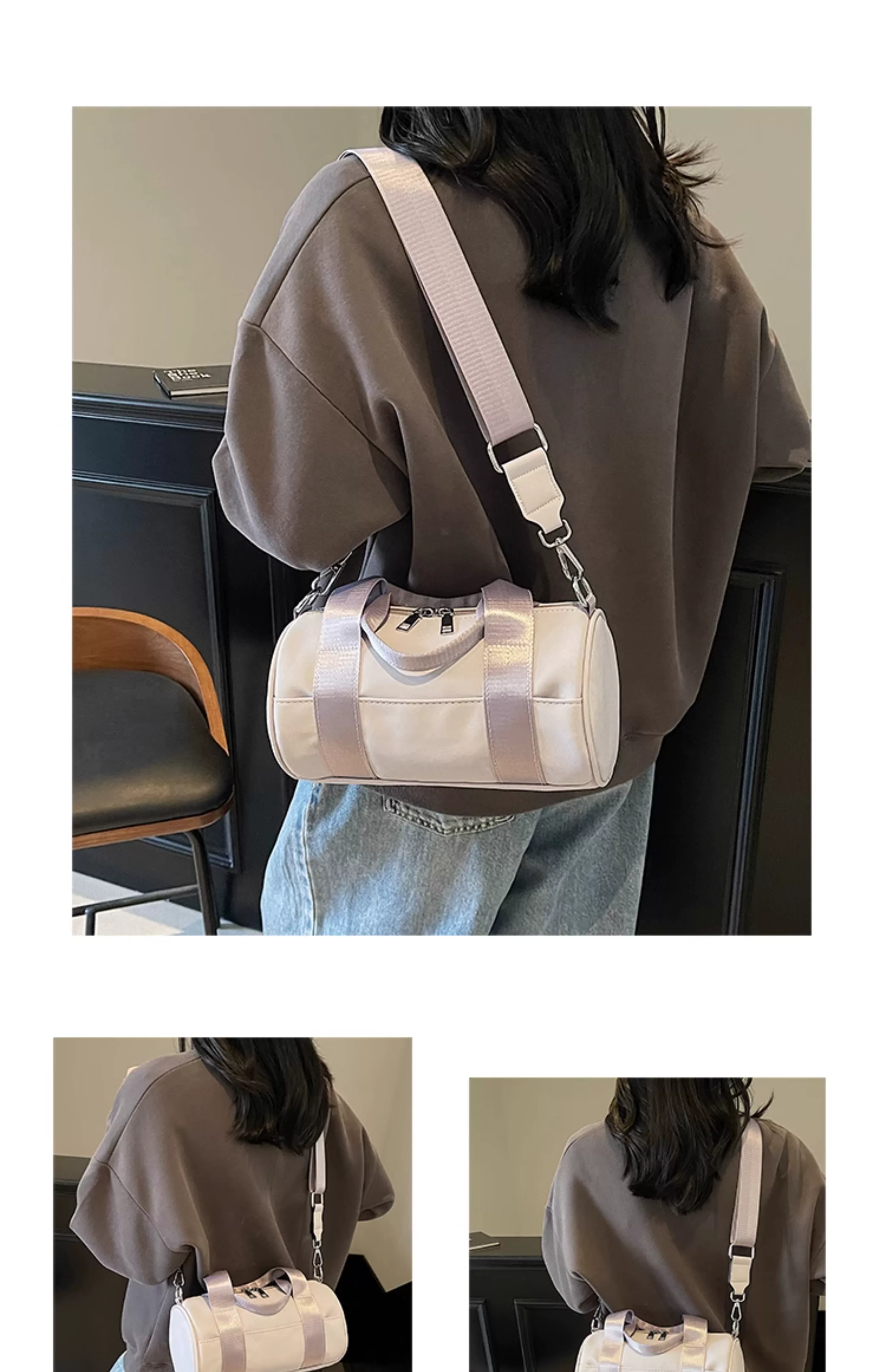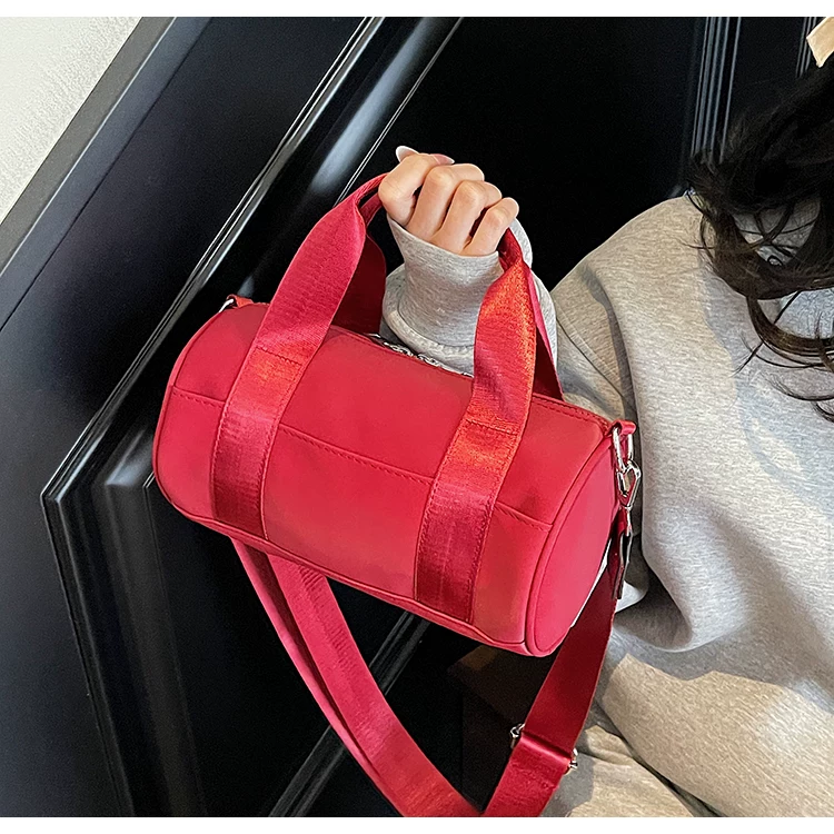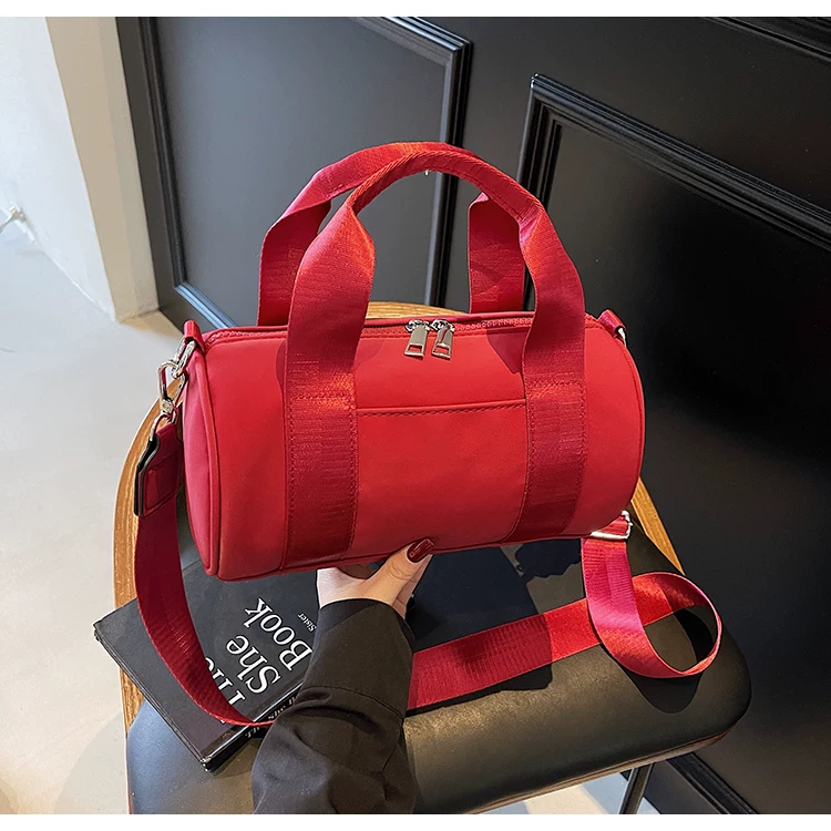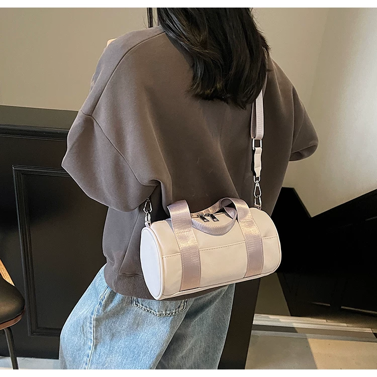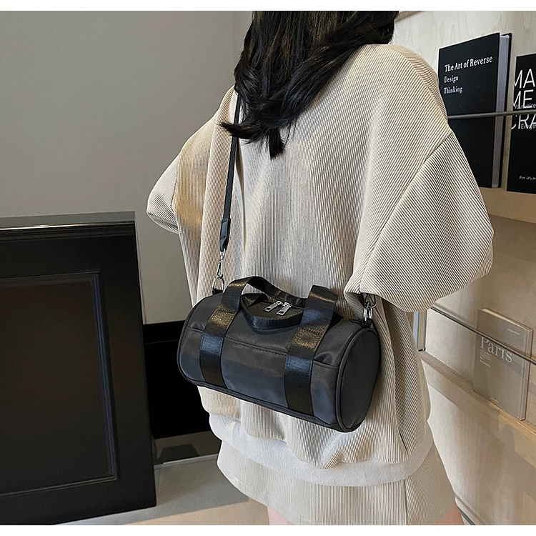 - Túi vải canvas nữ, dung tích lớn, thiết kế độc đáo mùa hè 2025, túi đeo chéo quai rộng, túi hình trụ thời trang cao cấp.