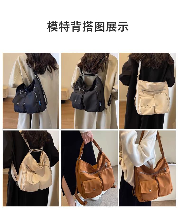 - Túi vải nylon dành cho nữ, sức chứa lớn, túi đeo chéo đa năng mùa thu đông 2025, túi tote đi làm đa chức năng