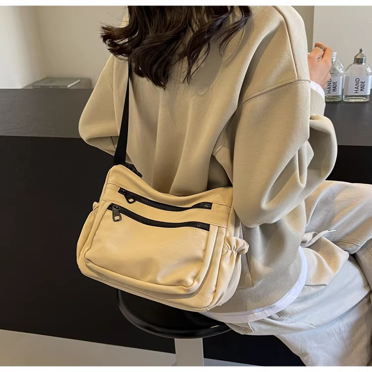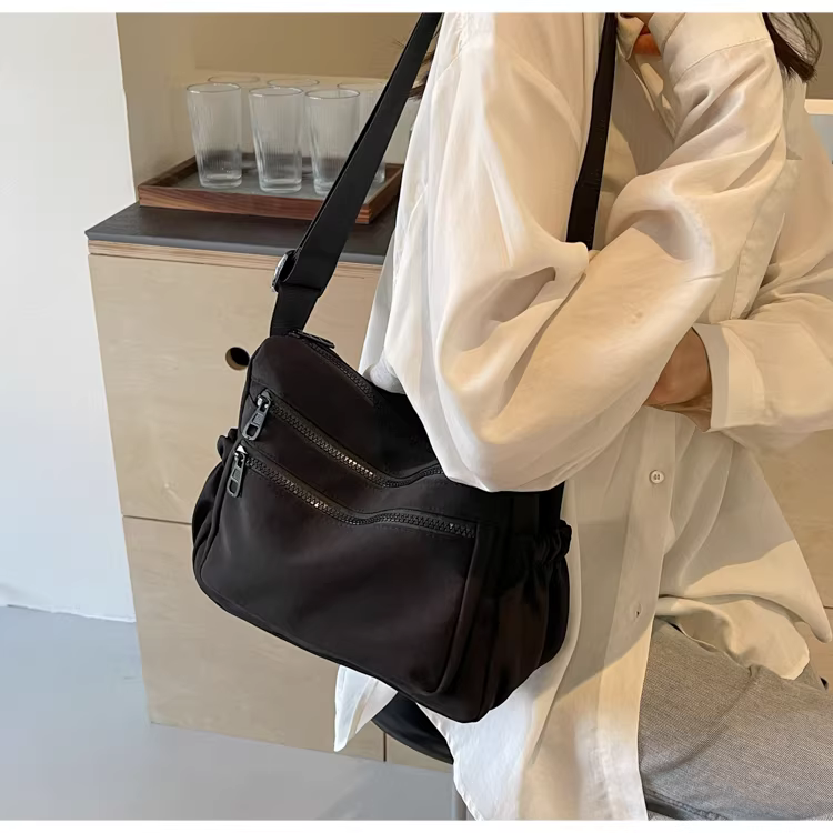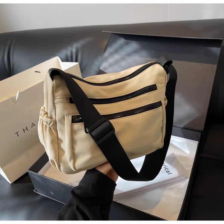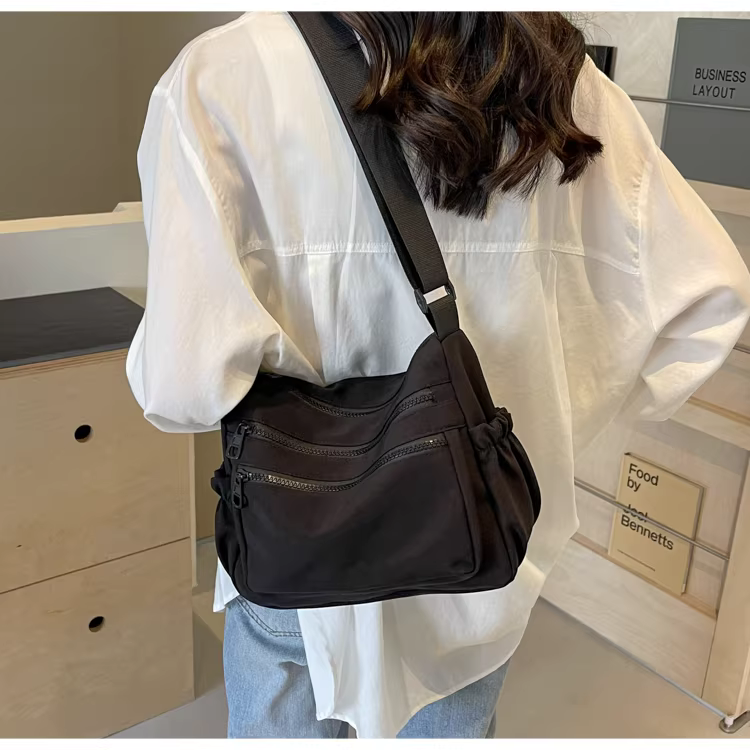 Túi vải nylon đeo chéo nữ kiểu dáng thu đông 2025, dung tích lớn, đa năng, thời thượng, túi vuông nhỏ đeo vai