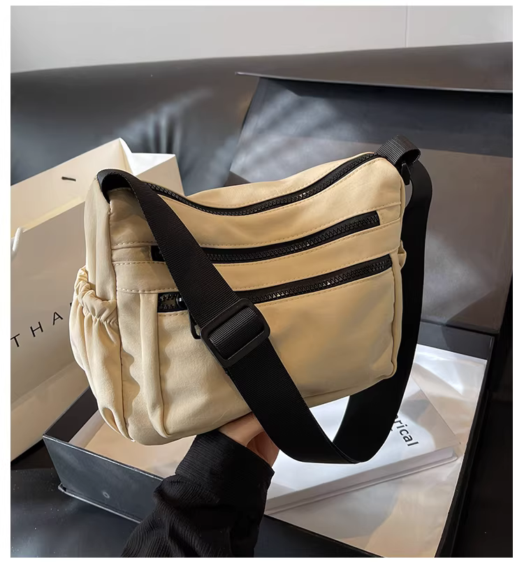 - Túi vải nylon đeo chéo nữ kiểu dáng thu đông 2025, dung tích lớn, đa năng, thời thượng, túi vuông nhỏ đeo vai