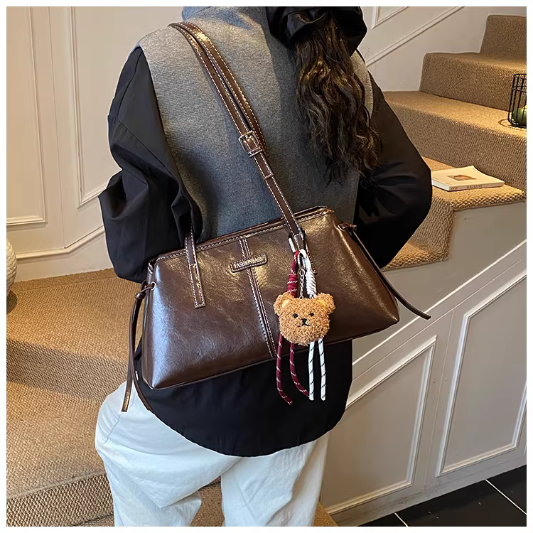 - Túi xách nữ cao cấp, chất liệu có vân, dung tích lớn, thiết kế cổ điển độc đáo mùa thu đông 2025, đeo vai/nách, túi đi làm.