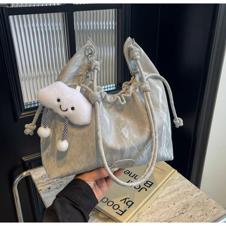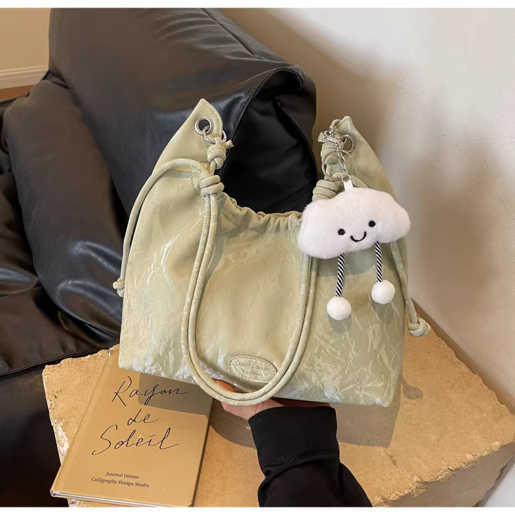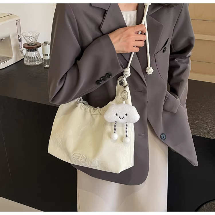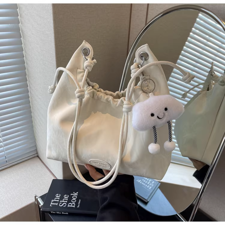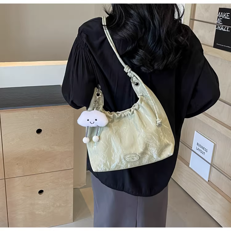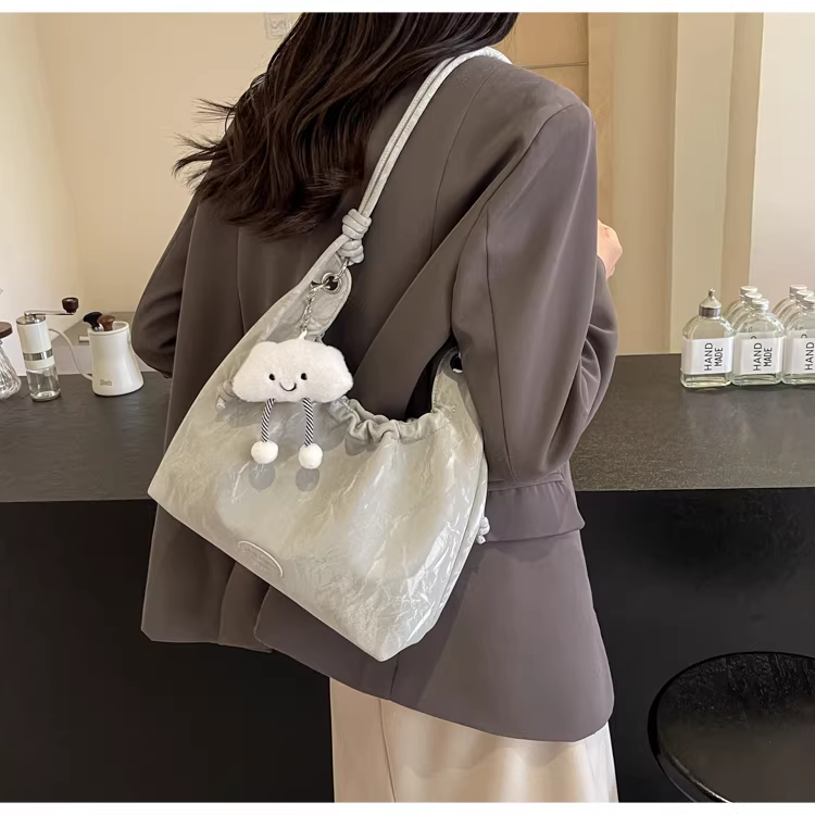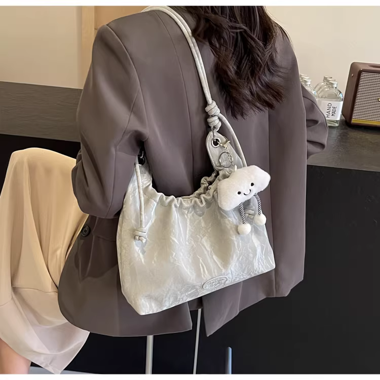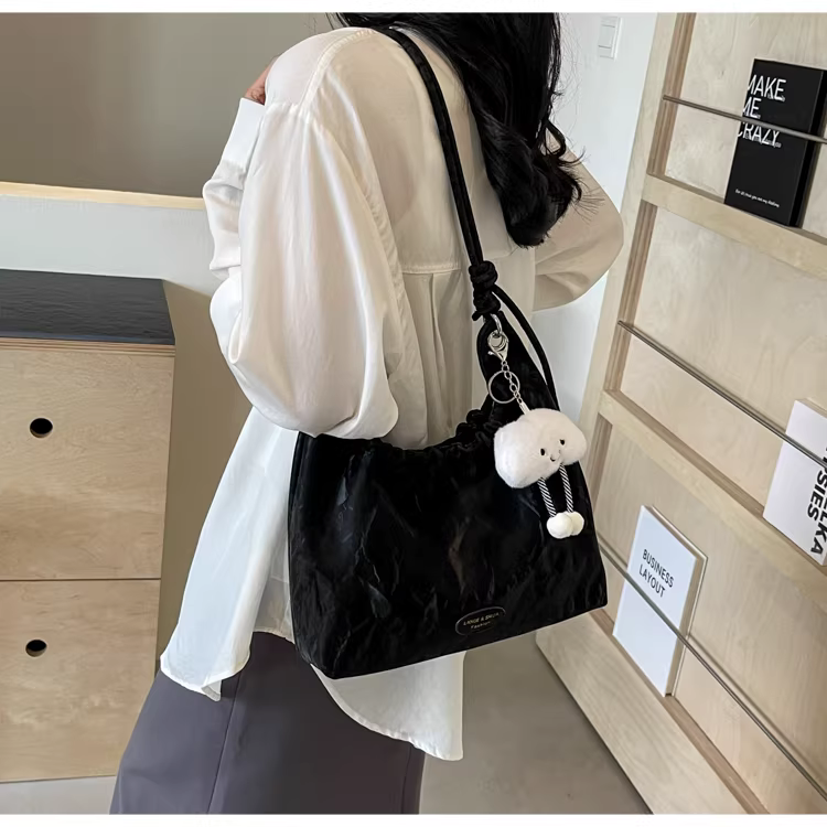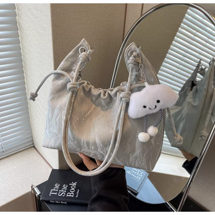 - Túi xách nữ cỡ lớn 2025, kiểu dáng mới, đeo vai, xếp ly, thời trang, dành cho sinh viên, đi học, đi làm, túi tote