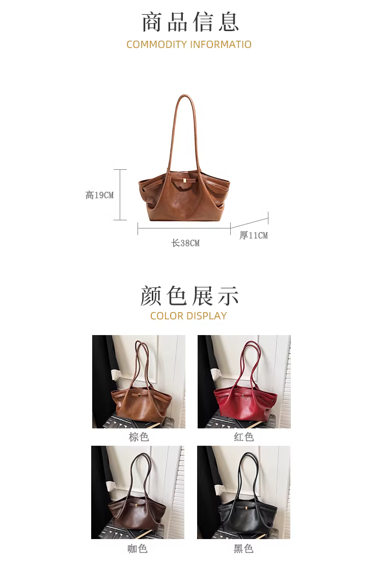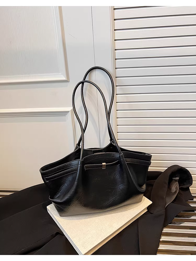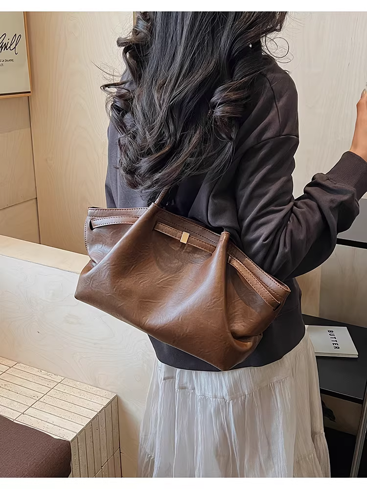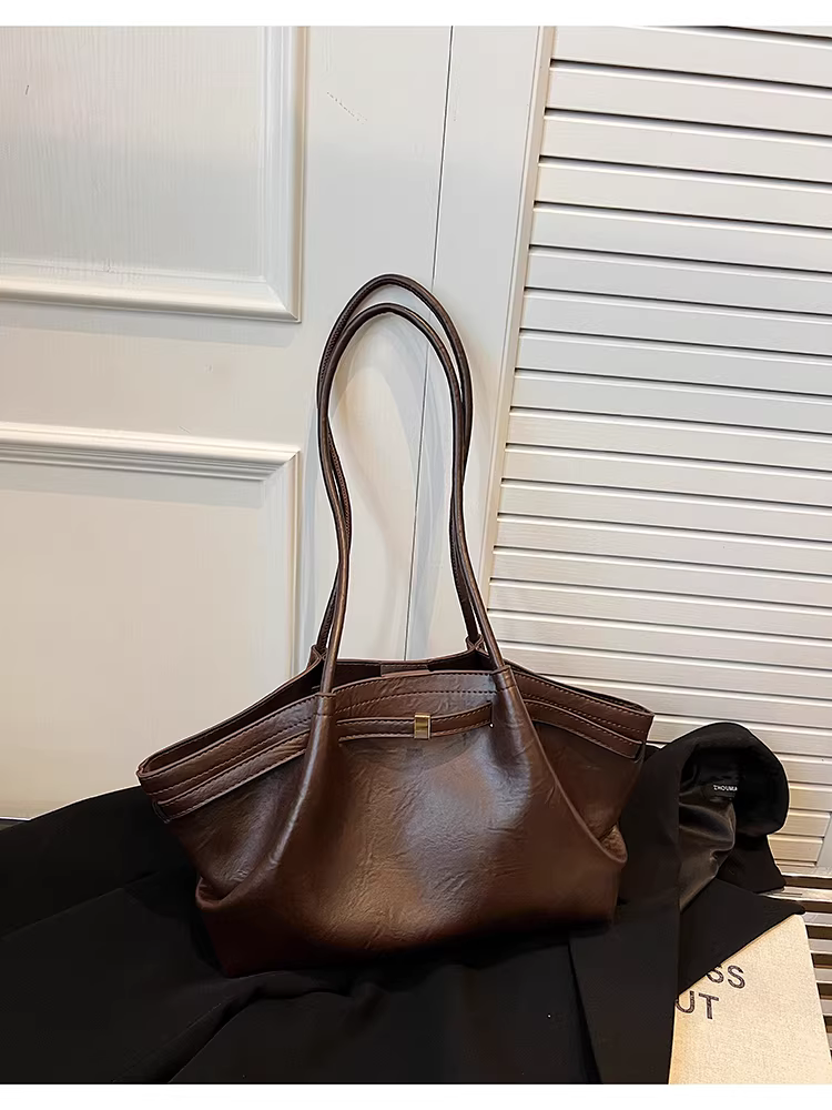 - Túi xách nữ cỡ lớn, mùa thu đông 2025, kiểu dáng retro xếp ly độc đáo, đeo vai/nách, thích hợp đi làm và đi làm hàng ngày